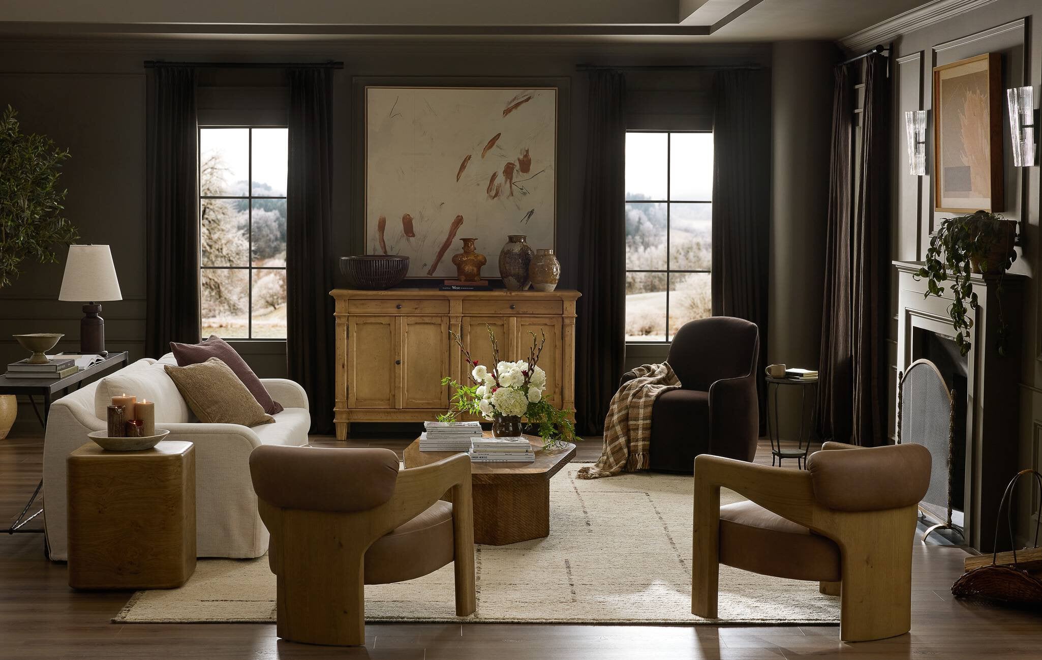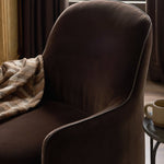 Compact and cozy, this high-back swivel chair with pillow-formed arms features contrast piping outlining its silhouette. Velvety performance fabric in a deep brown hue offers maximum comfort. The base is affixed to a 360-degree swivel for relaxed lounging. Performance fabrics are specially created to withstand spills, stains, high traffic and wear, ensuring long-term comfort and unmatched durability.