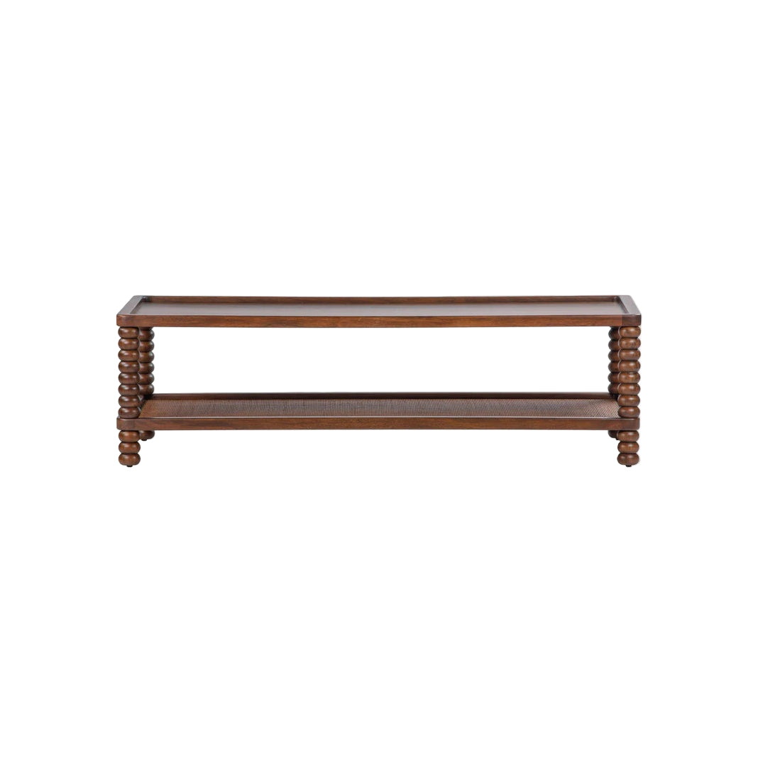 The Tangle Cane Coffee Table captures cottage authenticity through skilled woodworking and proportional design. Its elegantly turned legs showcase traditional joinery techniques, while dual generous tiers provide practical space for books, decorative objects, and everyday essentials. This centerpiece brings warmth and character to living rooms, balancing visual appeal with functional versatility.