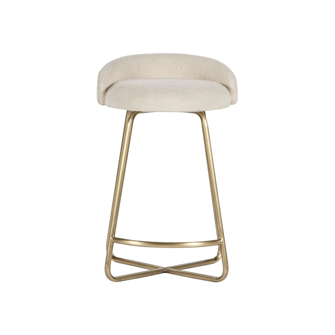 The Corsera Counter Stool reinterprets the pub classic through contemporary design and refined materials. Its softly upholstered seat wrapped in natural cotton Dhurrie fabric provides comfort and tactile warmth, while a radiused steel leg frame finished in Antique Brass delivers both structural elegance and visual richness. This versatile seating solution bridges modern and traditional aesthetics, bringing curated sophistication to kitchen islands, bar areas, and dining spaces. The harmonious pairing of organic upholstery with warm metallic finishes creates an inviting presence that complements diverse interior styles.
