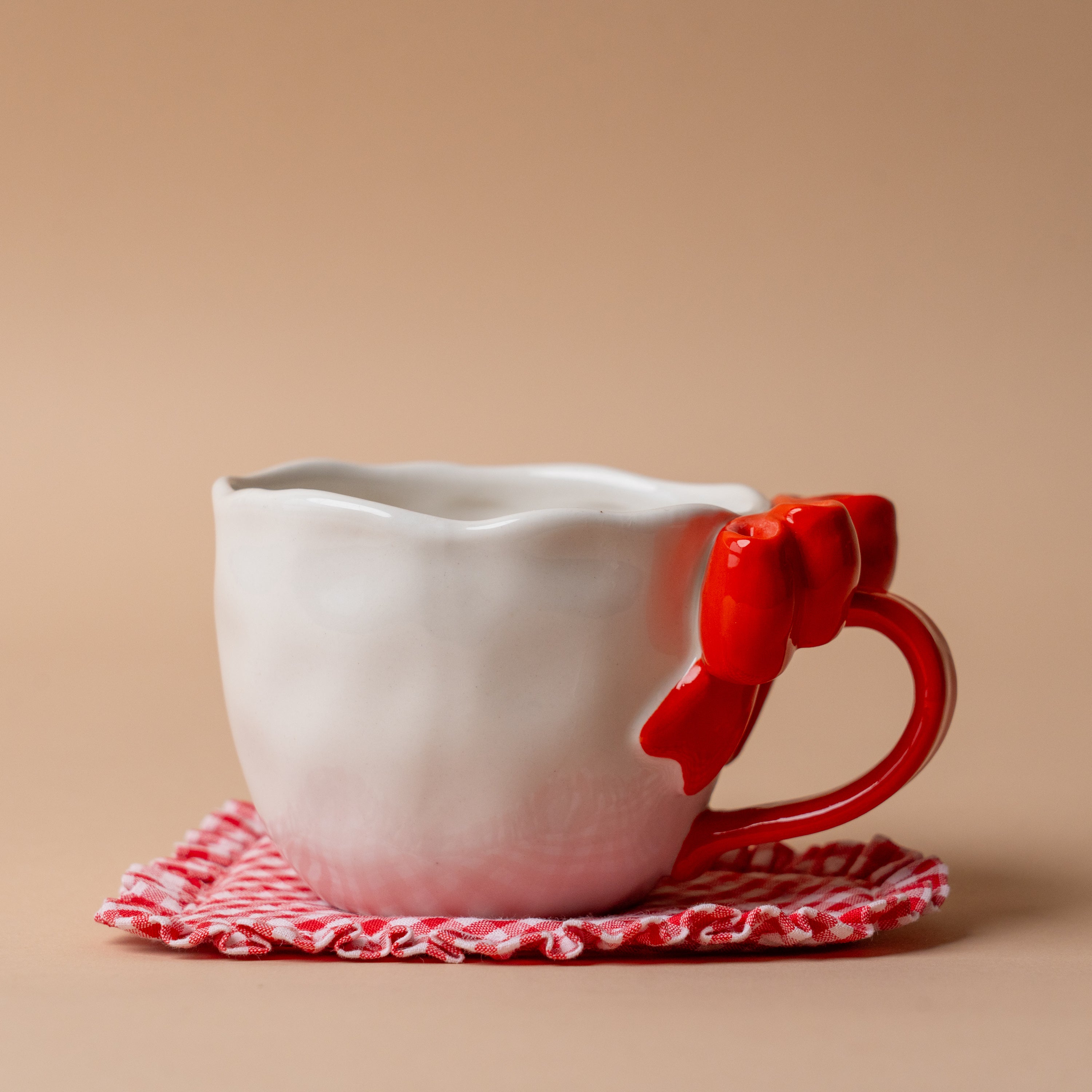 Celebrate love with these delightful Gingham Heart Coasters, sold in singles - these could be a sweet add-on to a gift, or purchase a few to make a set! Each coaster features a classic red gingham pattern accented with an adorable ruffled edge, creating a cozy, inviting aesthetic. Whether you're shopping for someone special or indulging in a little self-care this Valentine's season, this charming coaster makes a thoughtful gift that spreads joy every time you use it.