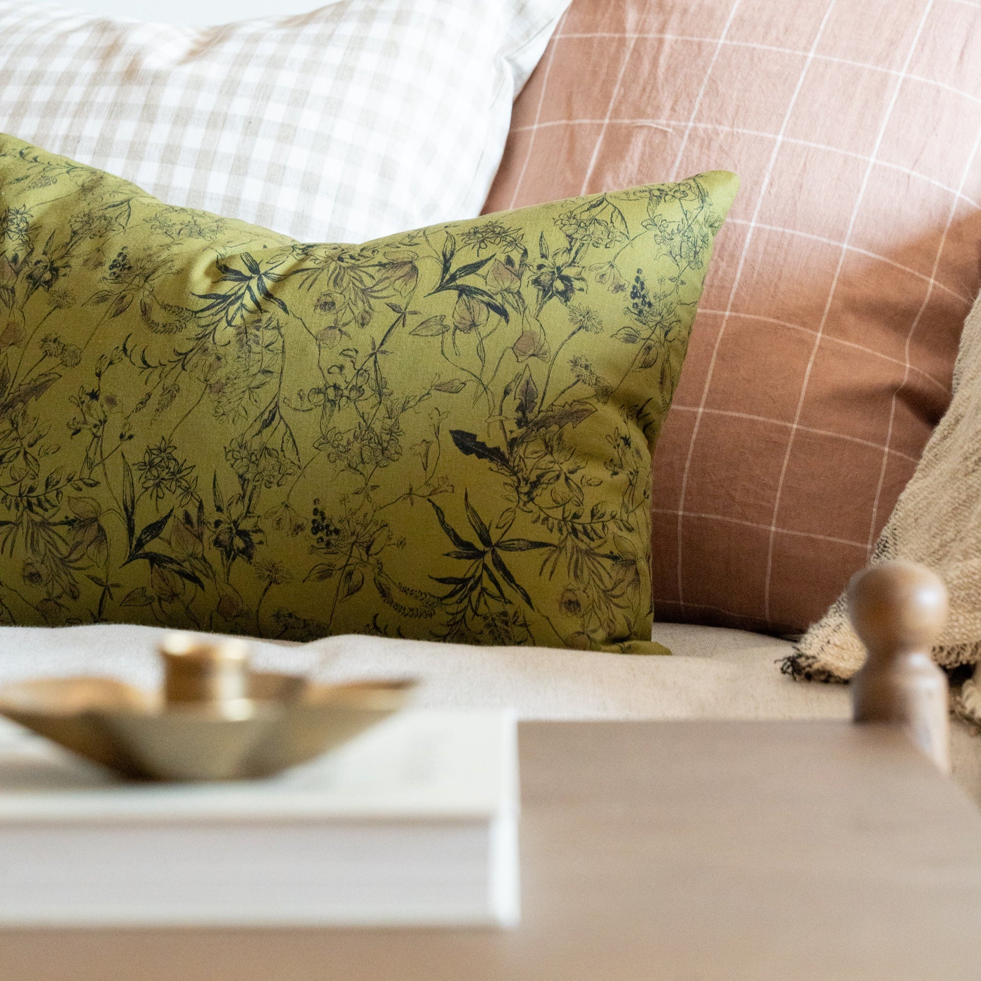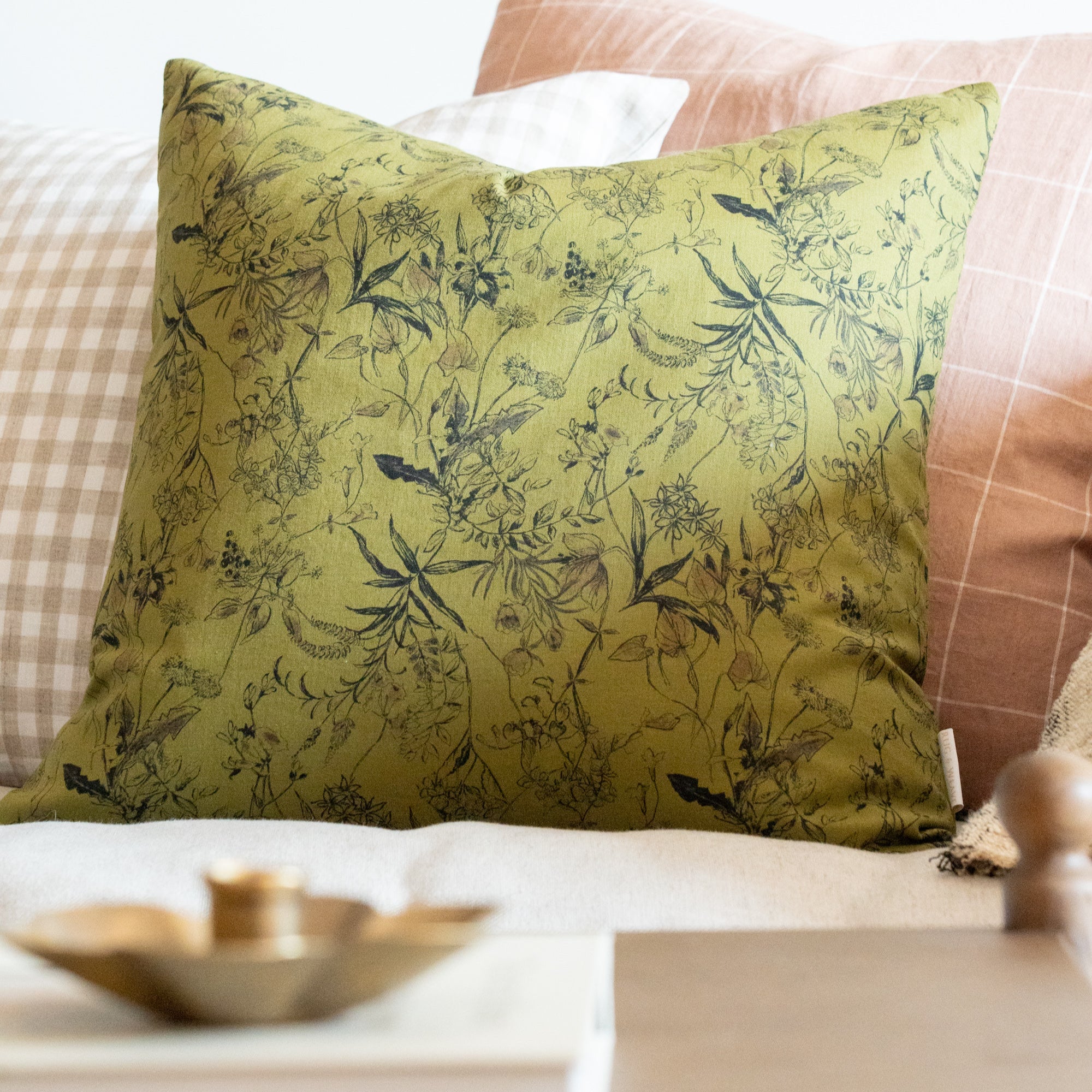 Our Akira Pillow Cover is created from a super soft cotton featuring a striking floral motif on a vibrant green background, printed in Japan. This brings a touch of botany and colour to your decor this season. Double sided for a truly luxurious feel, place this unique pillow anywhere you want to add some visual interest.