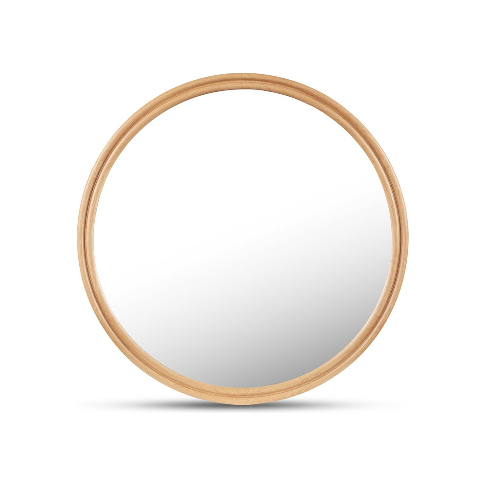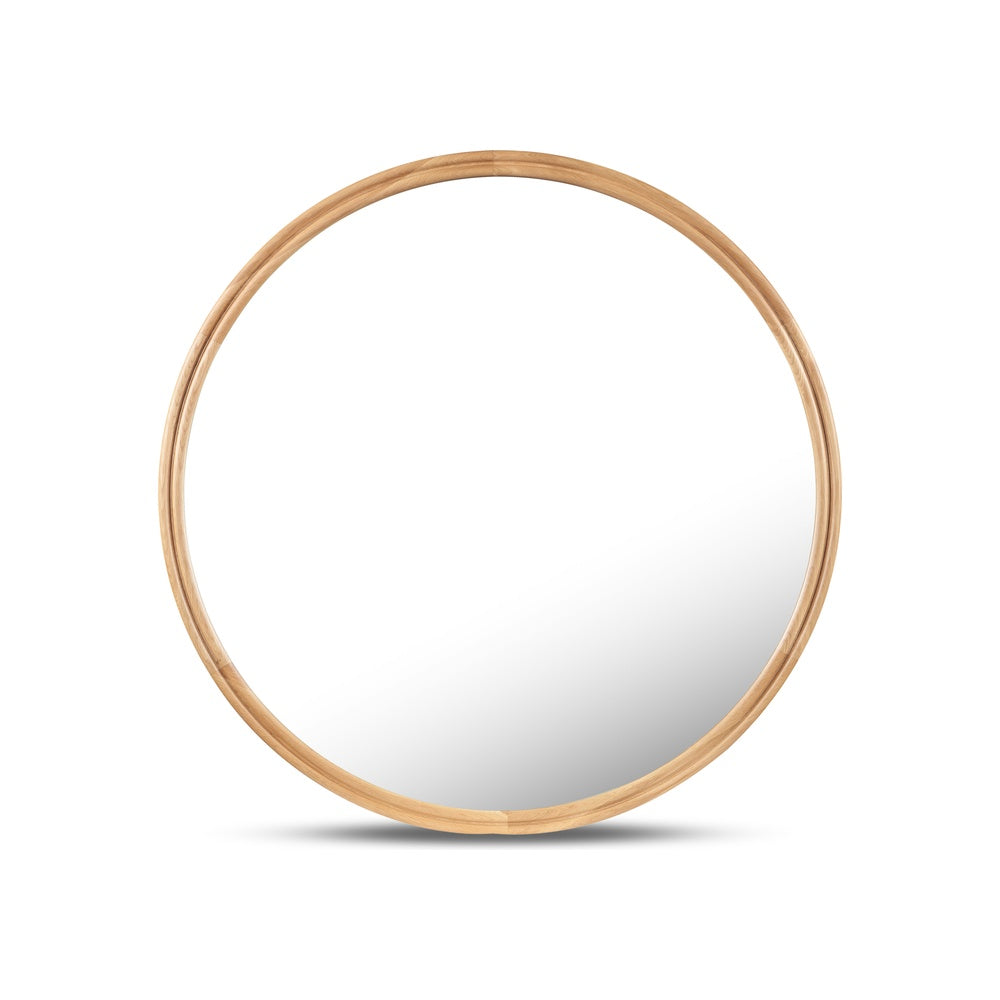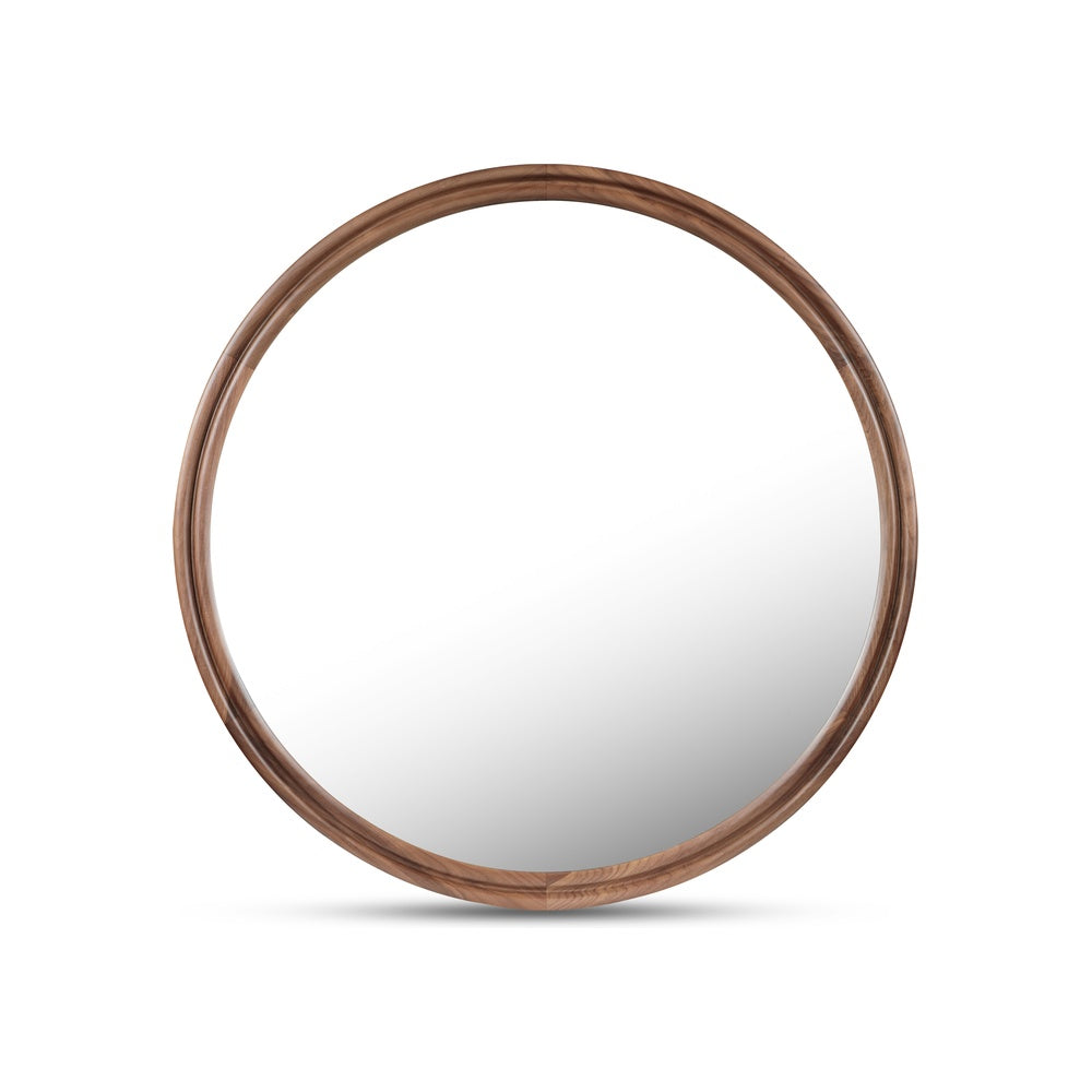 The Alban small round mirror showcases the natural beauty of wood through a carefully crafted double-frame design. Its precise finish accentuates the wood’s rich, warm hues, creating a tranquil focal point for entryways, bedrooms, or living spaces.