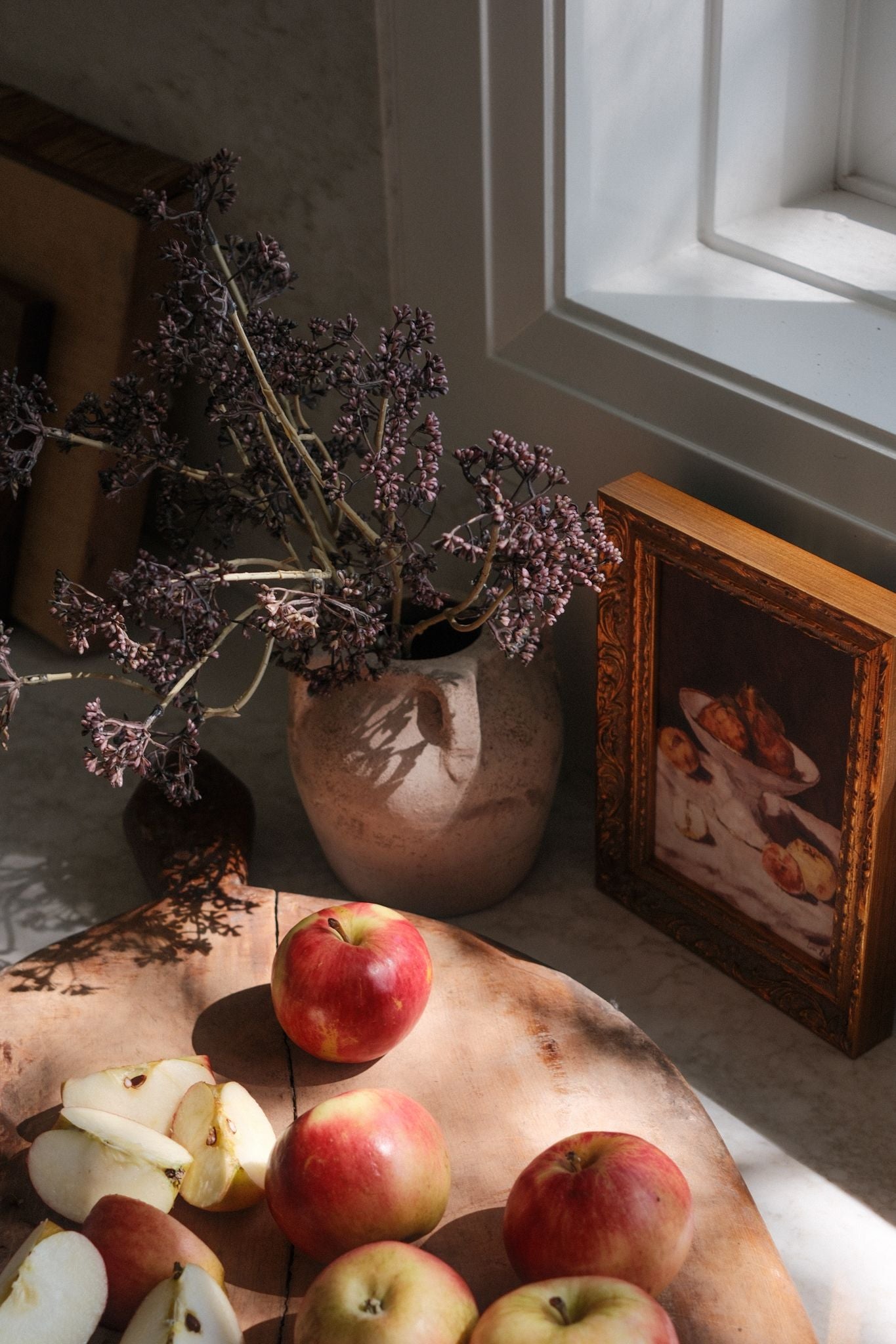 The "Antique Fruit" Framed Vintage Art Print captures a timeless still life of muted fruits arranged in an antique bowl, evoking classic elegance. Perfect for enhancing living room shelves or bedroom nightstands, its subtle colour palette and refined composition add a sophisticated touch to any space.