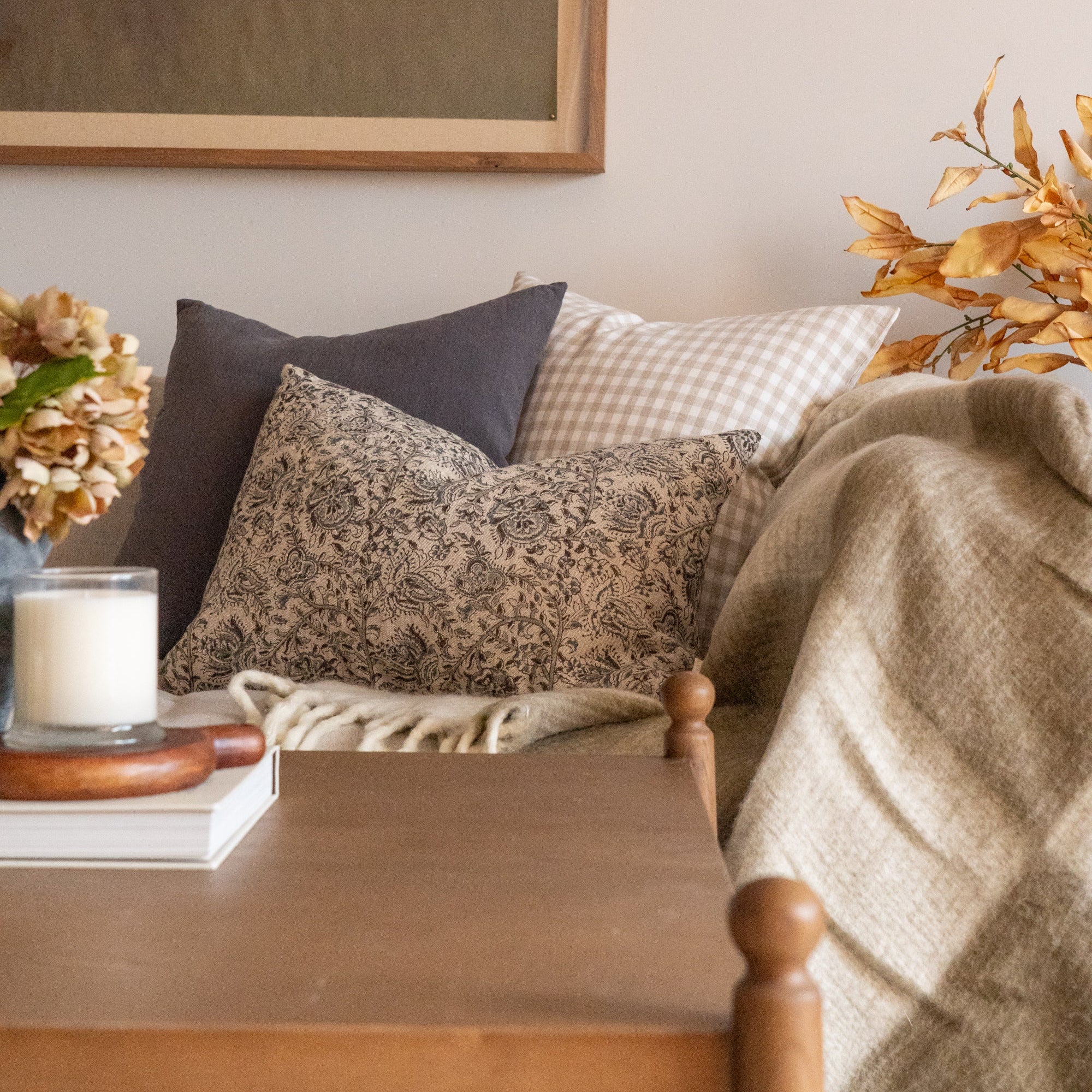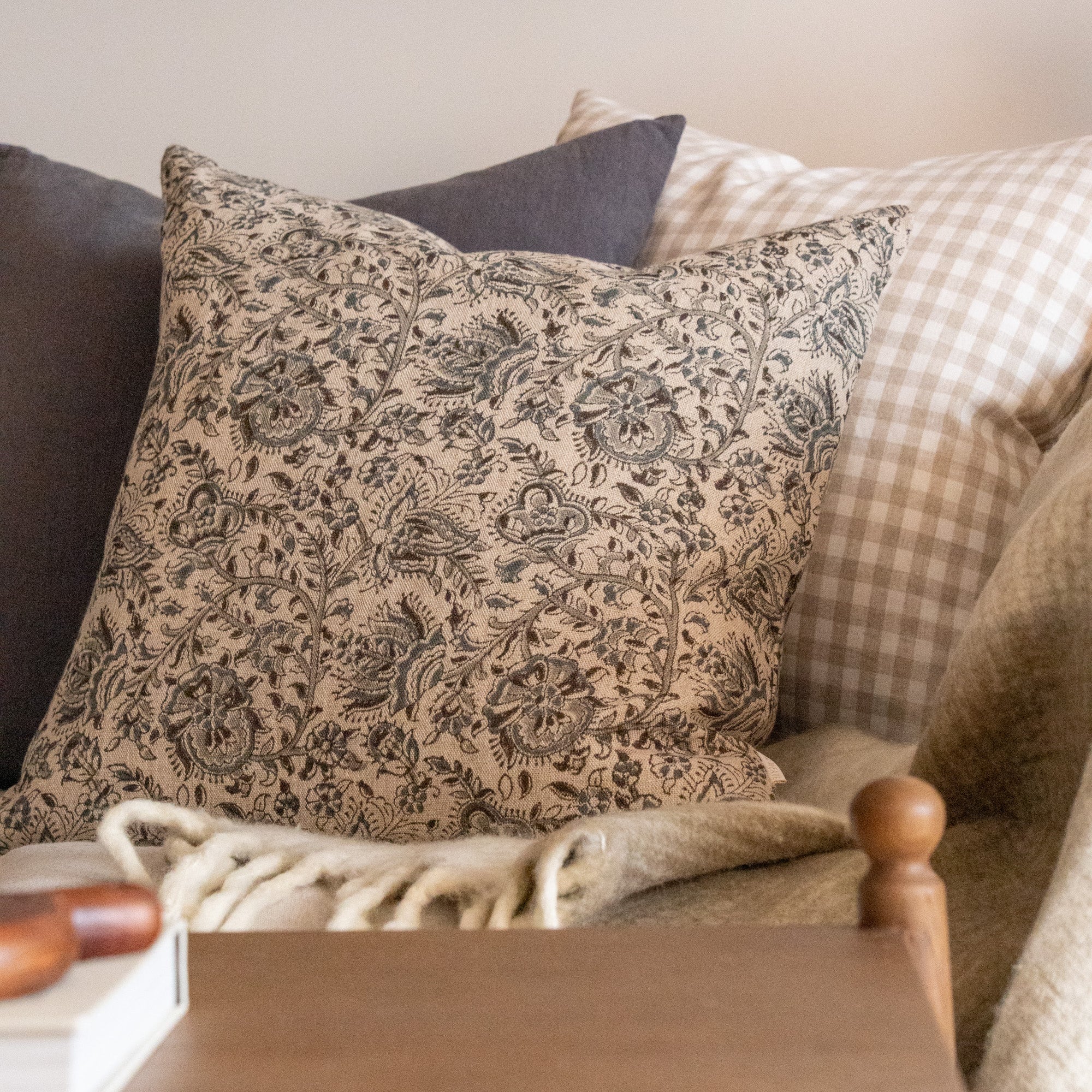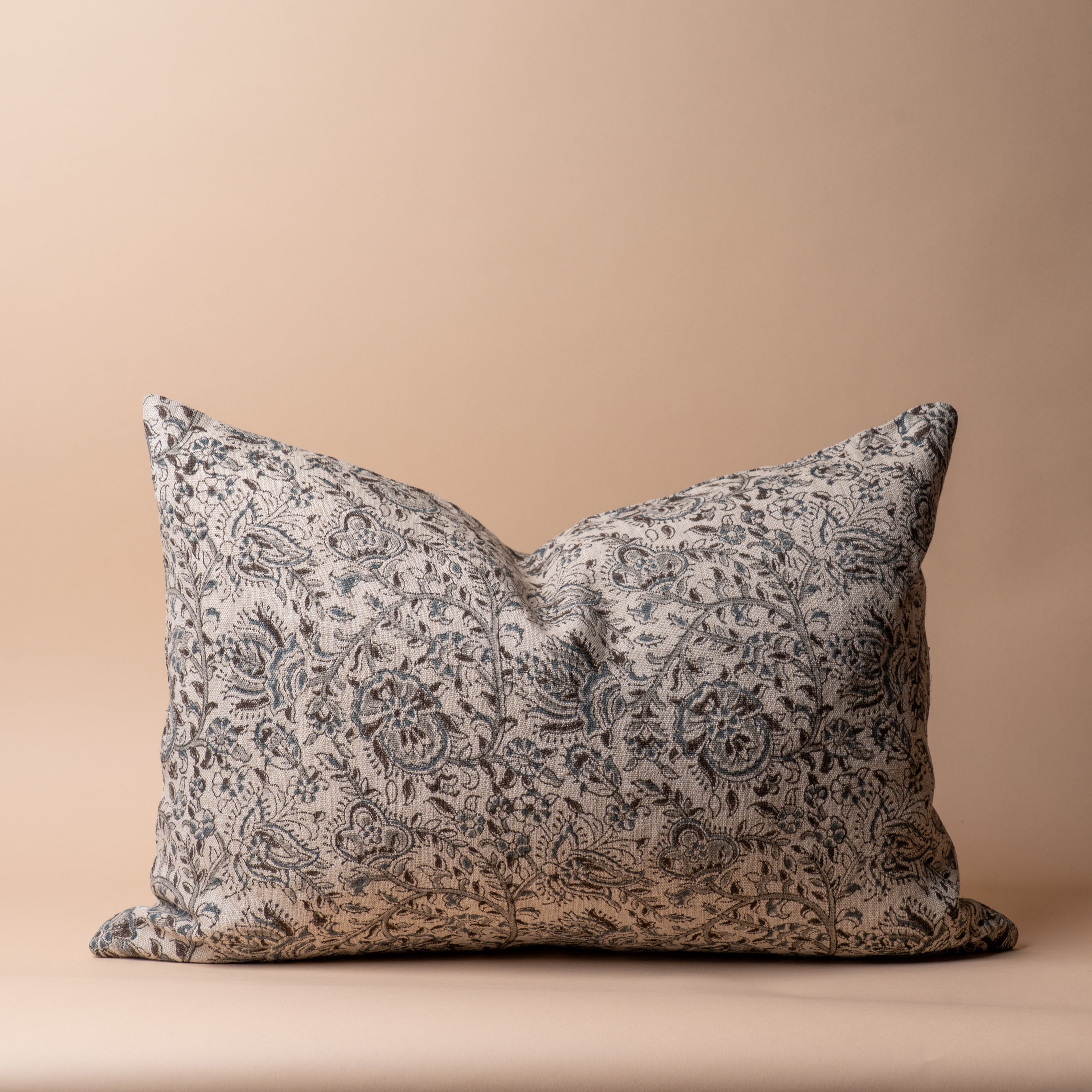 Now double sided for even more stunning print - our Aubrey Pillow Cover features a botanical motif in muted tones of blue and grey on a neutral rustic linen. Easily style this timeless accent in your home that will last season after season.