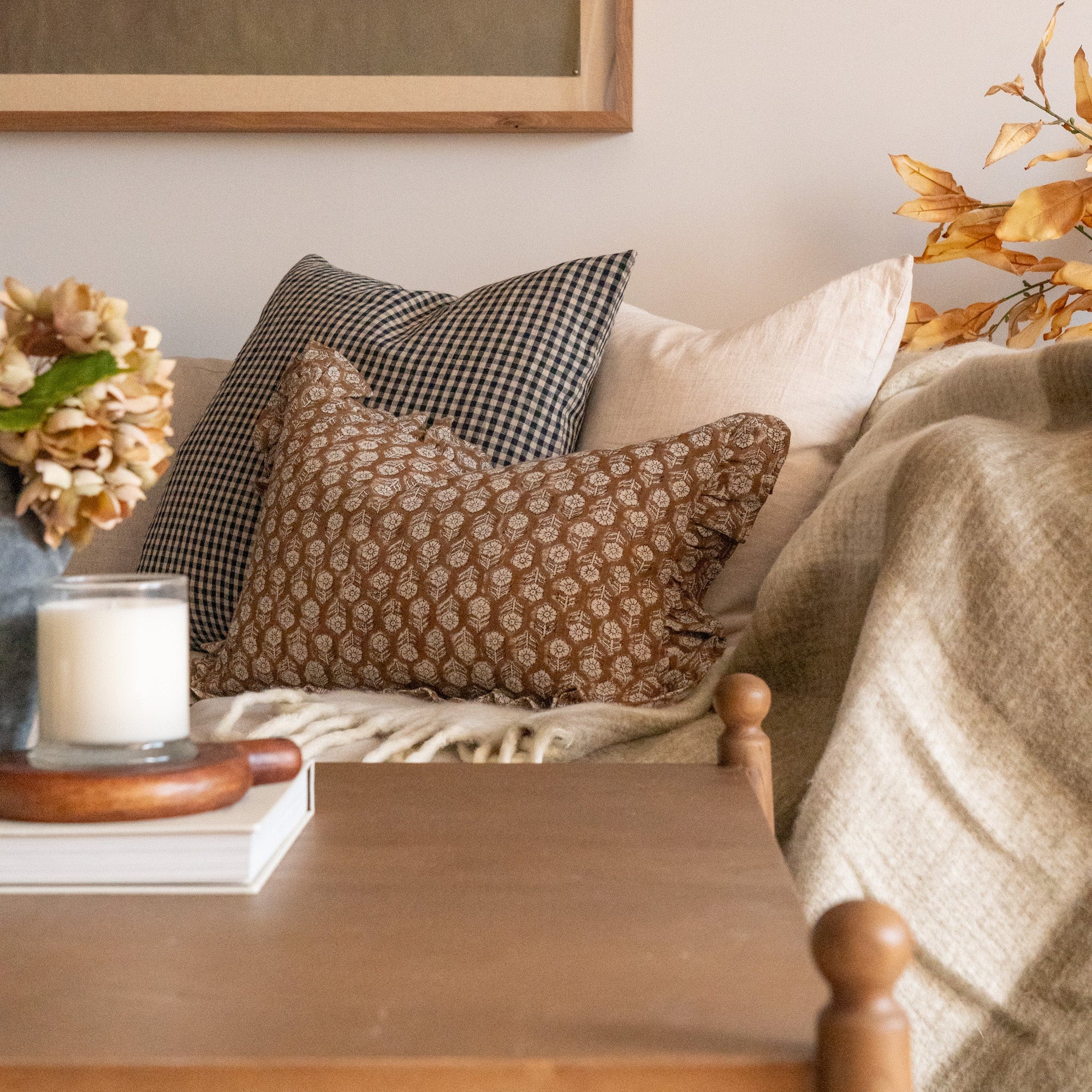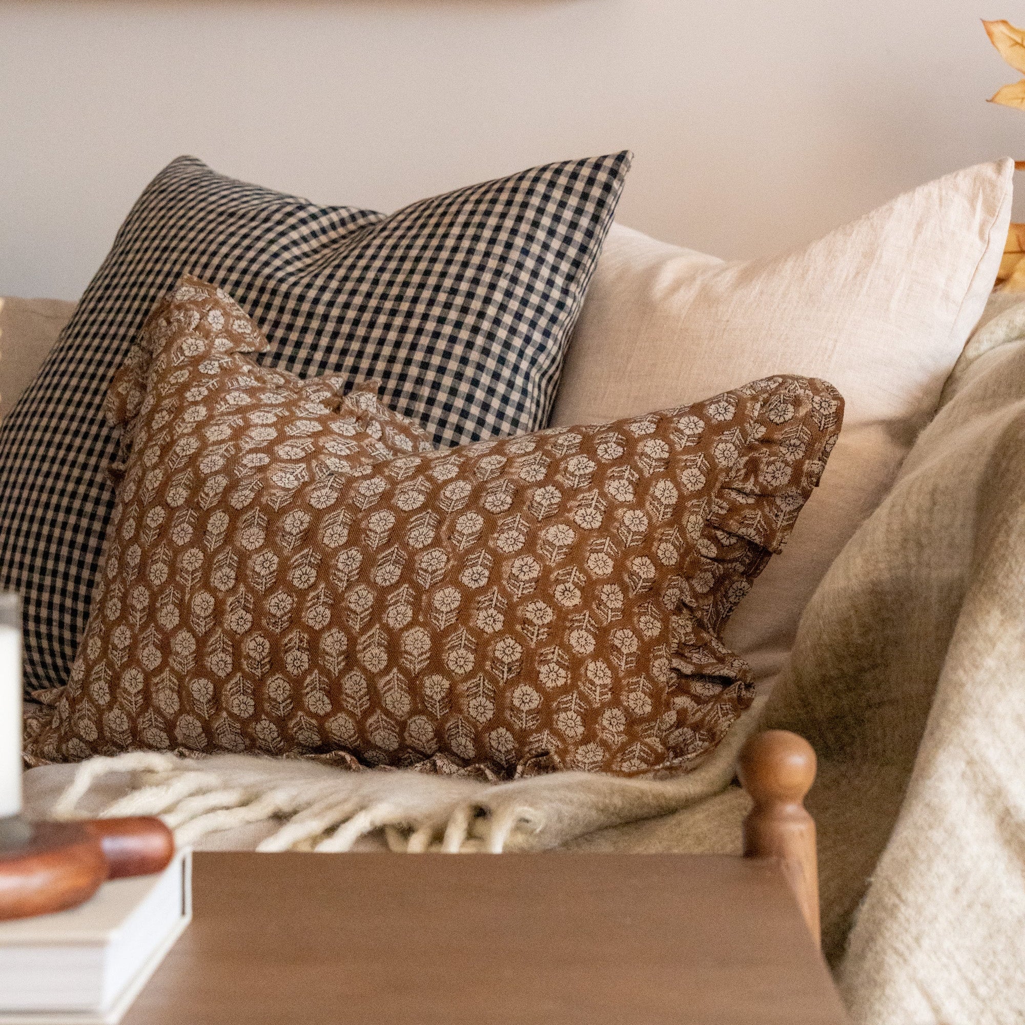 Betsy Block Print Ruffle Pillow Cover
