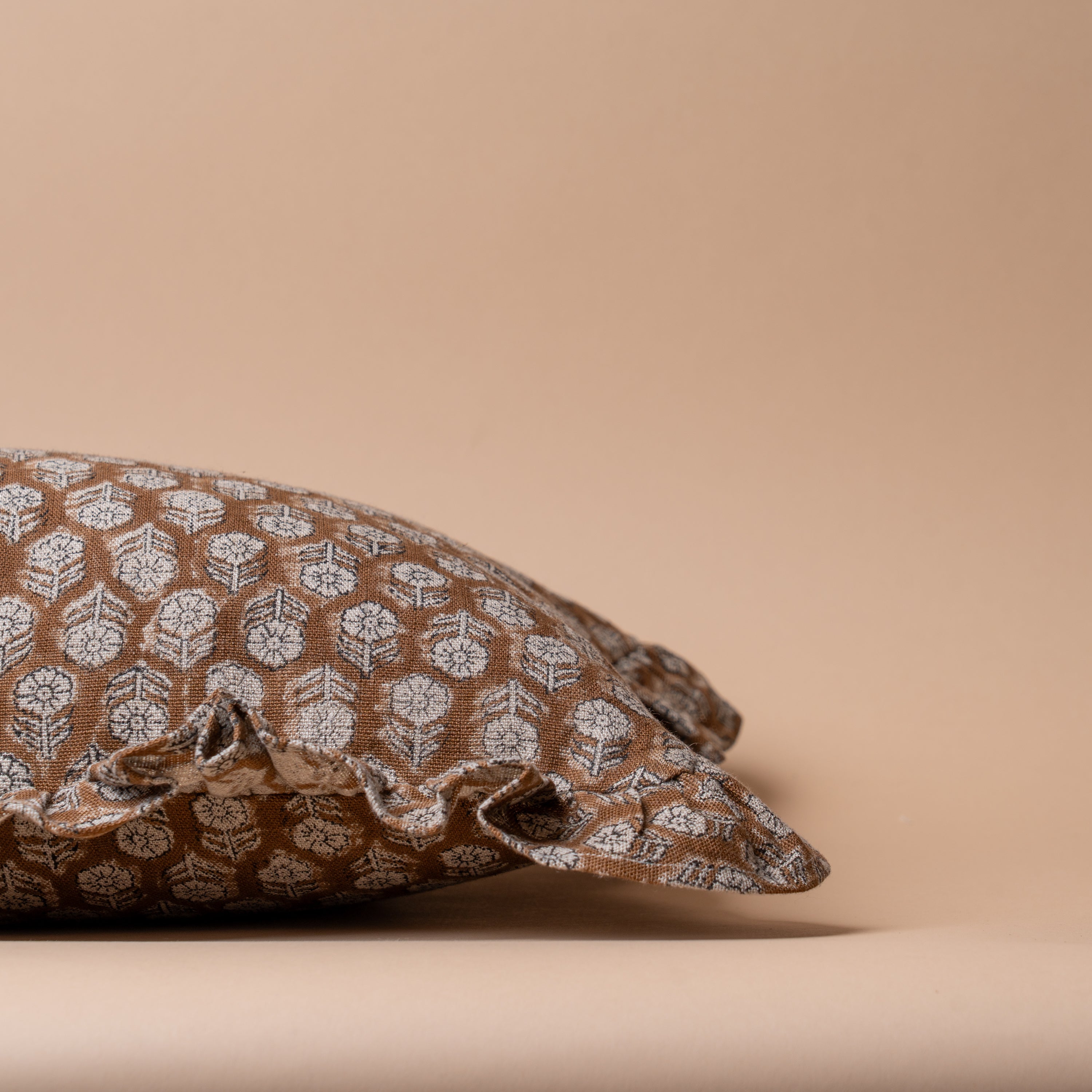 Bring a timeless elegance to your home decor with our Betsy Block Print Ruffle Pillow Cover. Crafted from hand block printed linen, this cover features a classic floral print with a fluttering ruffle that adds a feminine touch to any room. Its neutral tones and rustic charm add character to any space.