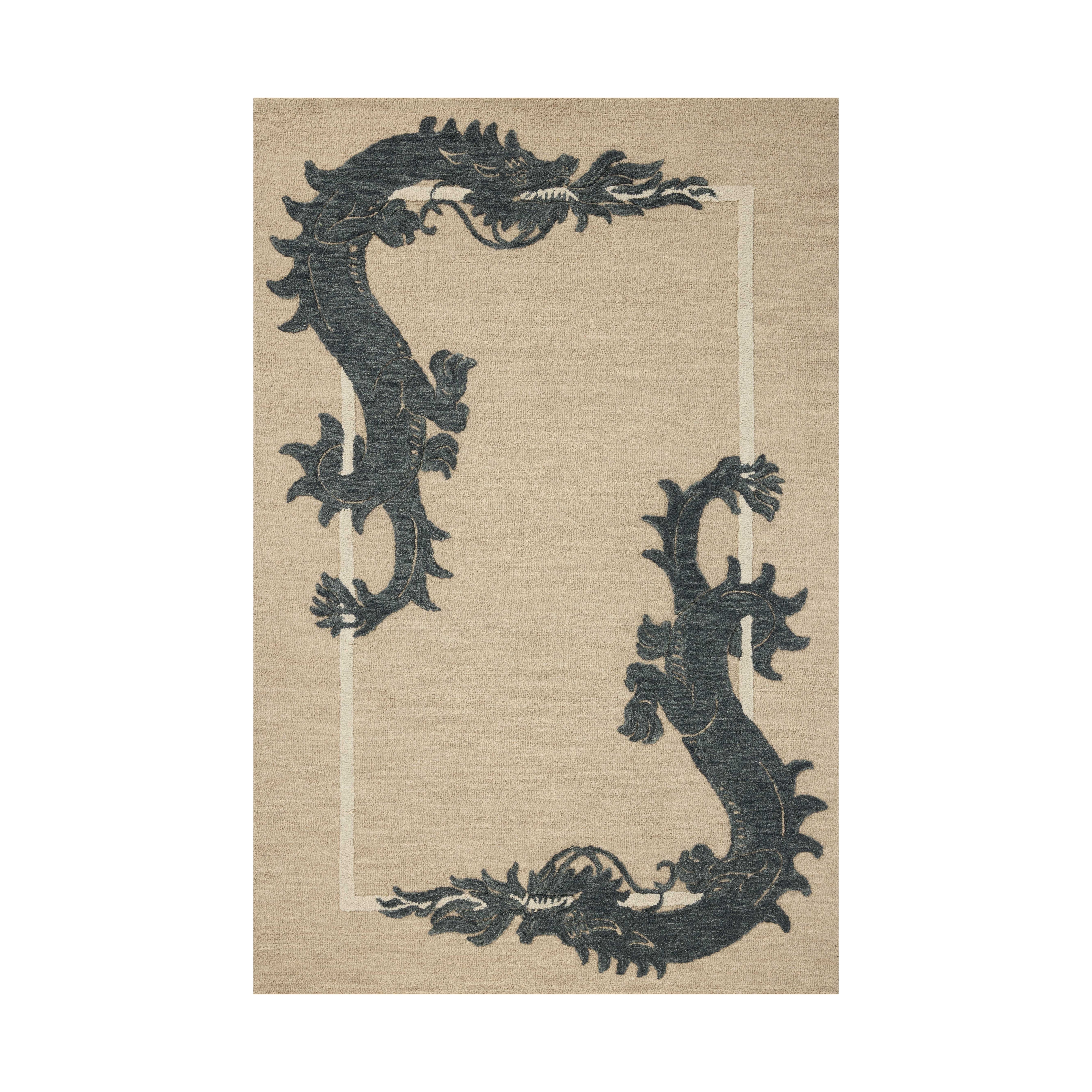 The Romi Collection by Brigette Romanek and Loloi presents a striking hand-tufted wool area rug anchored by an elegant dragon border in oatmeal and midnight tones. Subtly elevated pile construction adds tactile dimension throughout, while the sophisticated palette ensures seamless integration into varied interiors. Crafted in India under GoodWeave certification, this collection upholds rigorous ethical standards and directly supports weaver communities. Natural wool shedding is expected; maintain the rug's longevity through regular vacuuming without beater bar activation.