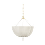 The Carolina pendant explores proportion and materiality with quiet confidence. The generous, soft form of the raw silk is eye-catching and special as it overlays a clear etched glass shade. The wrapped rods and matching tassel further add to the striking, airy material story. Accented by Aged Brass hardware, Carolina’s warm, luxurious presence makes for a dreamy piece in dining areas and bedrooms.