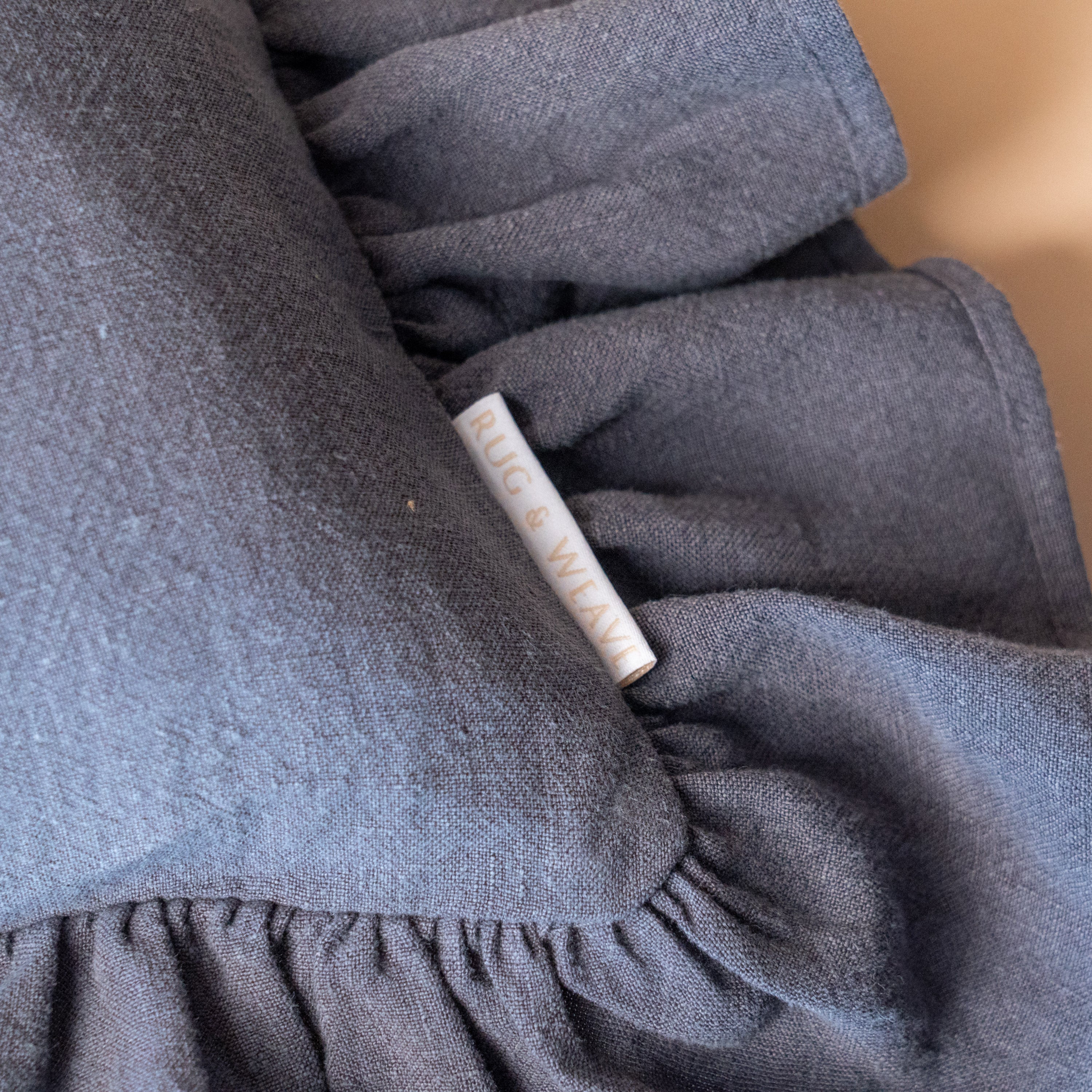 Bring a timeless elegance to your home decor this season with our Charcoal Ruffle Pillow Cover. Crafted from our favourite antique wash linen, this cover features a classic ruffle border that adds a feminine touch to your decor. A cool charcoal grey and soft texture make it a perfect fit for any room needing a touch of textural whimsy.