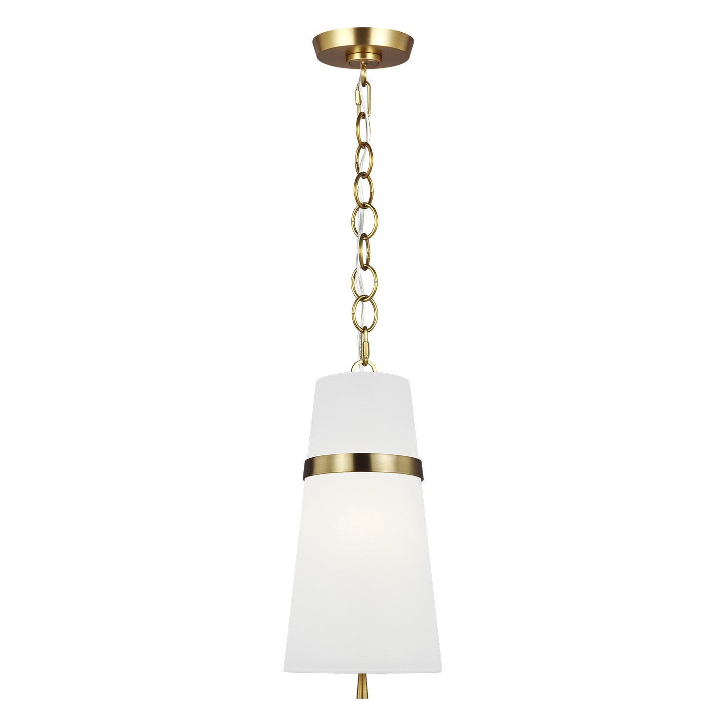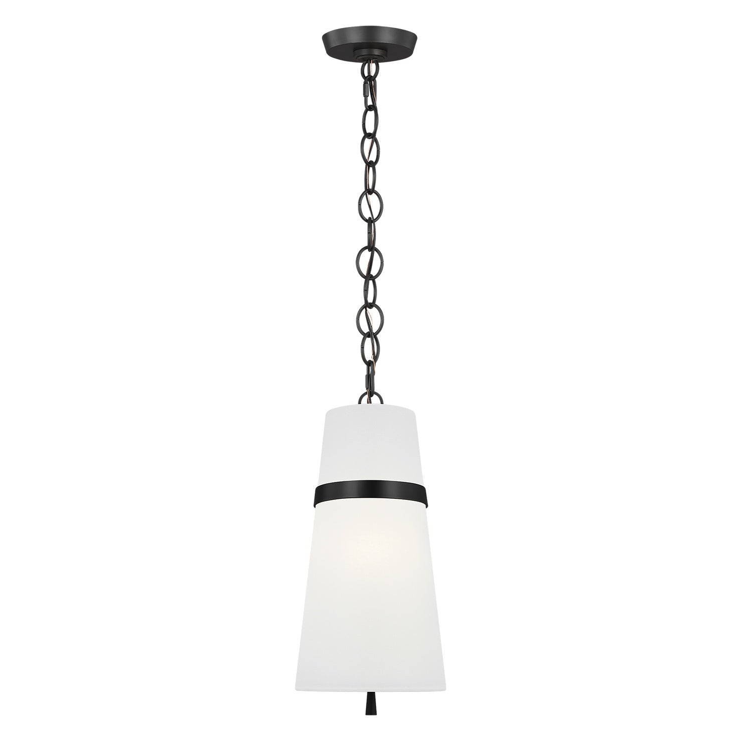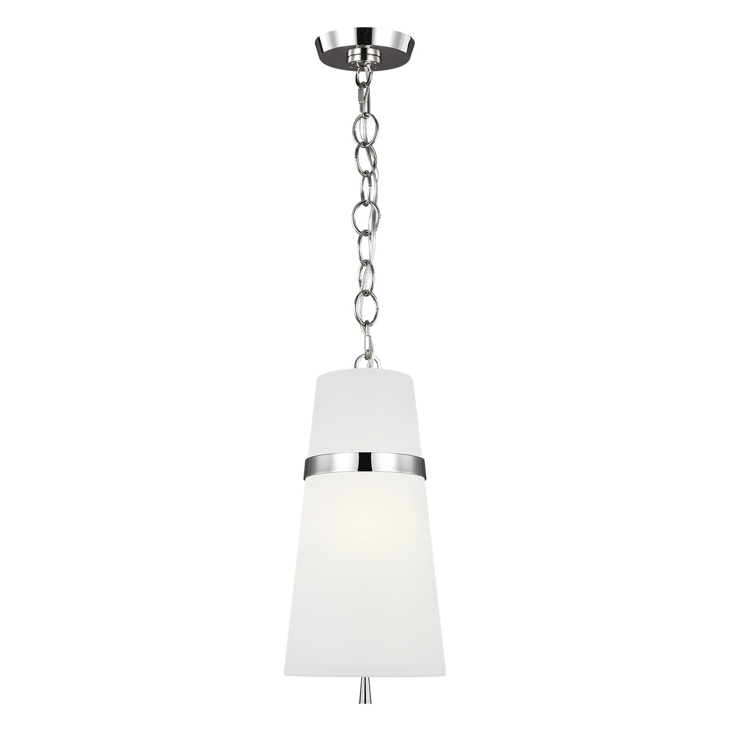The Cordtlandt Small Pendant series showcases a sleek, transitional design with a precisely balanced conical shade, accentuated by an optional metal band wrapped around its midsection.