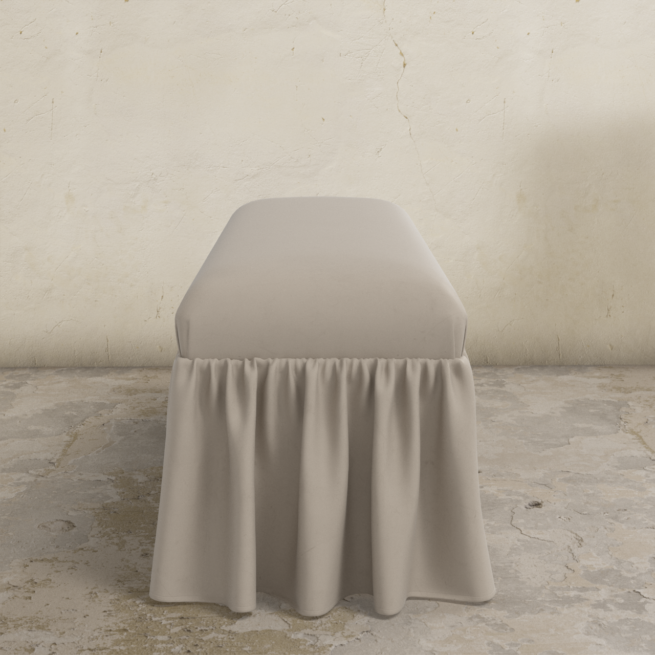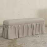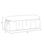 The Cricket Ruffle Bench combines refined aesthetics with versatile functionality. This made-to-order piece features elegant ruffle detailing that adds visual interest to any room. Position it at the foot of your bed, along your dining table, or in your entryway to create a welcoming focal point. Select from our curated custom fabric options to perfectly coordinate with your existing décor and design vision. Each bench is crafted to your specifications, ensuring a tailored fit for your space.