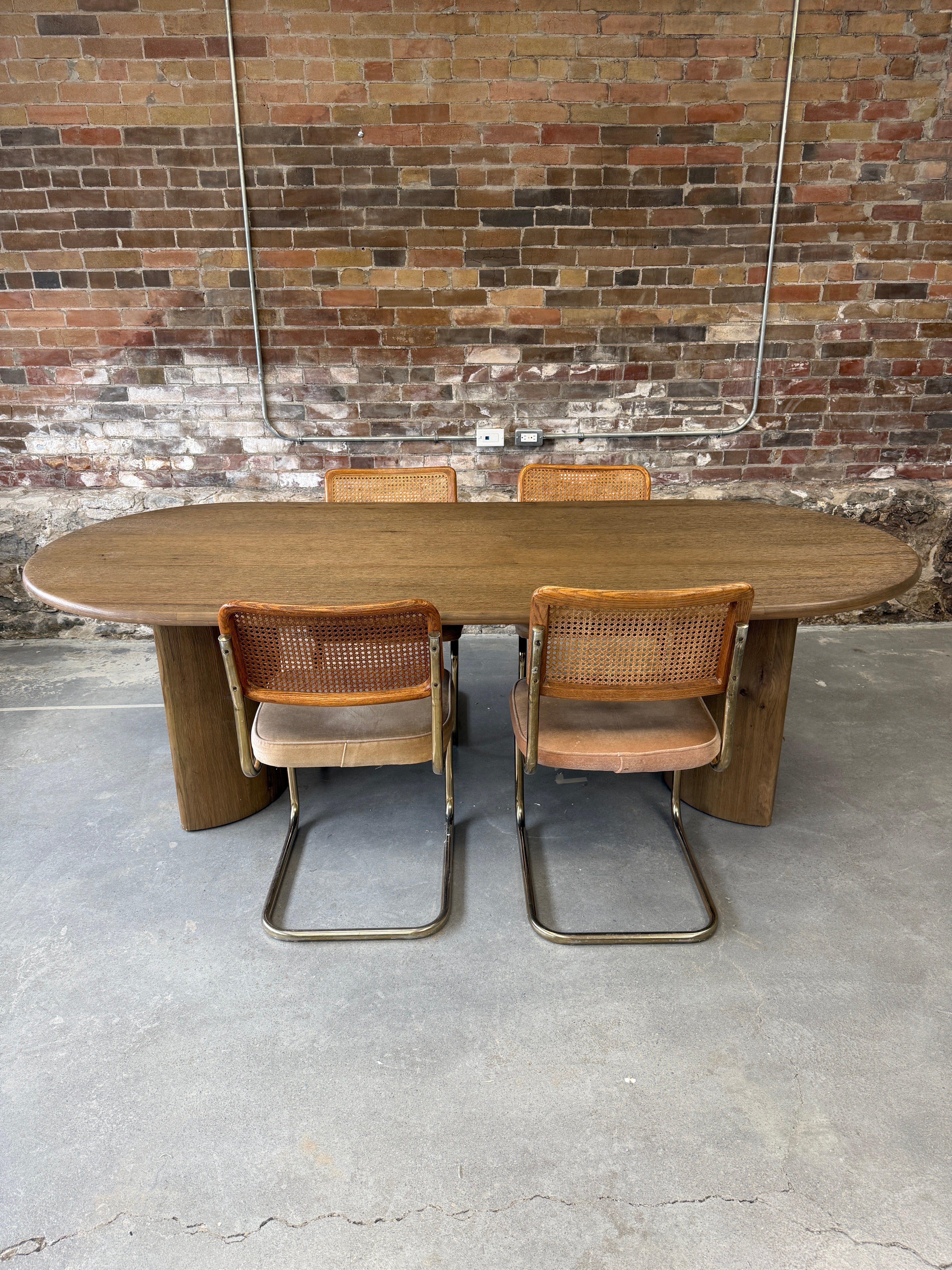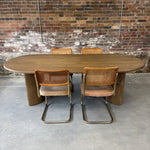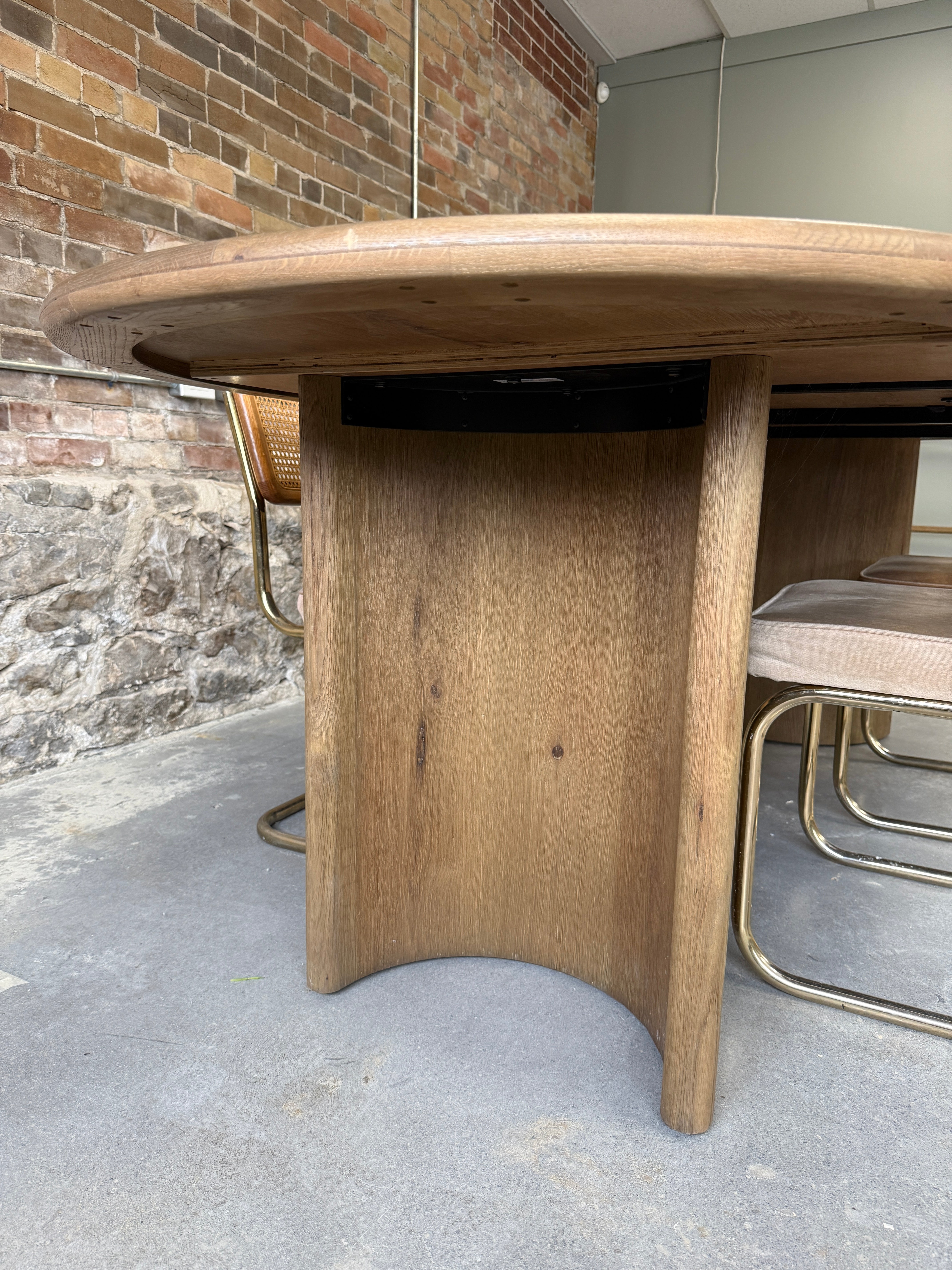 Introducing the Palmer Dining Table, a statement piece that brings organic presence to your dining room. With its crescent-shaped legs and sprawling oval tabletop crafted from oak or acacia, this table is a study in shape. Elevate your dining experience and add a touch of elegance with this luxurious and exclusive piece.