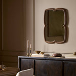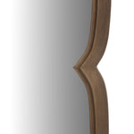 Crafted from premium solid oak with iron accents, this mirror features a distinctive petal-shaped frame that draws inspiration from botanical forms. Bullnose edge treatment provides refined finishing throughout, creating a sophisticated piece that combines natural wood warmth with architectural precision.
