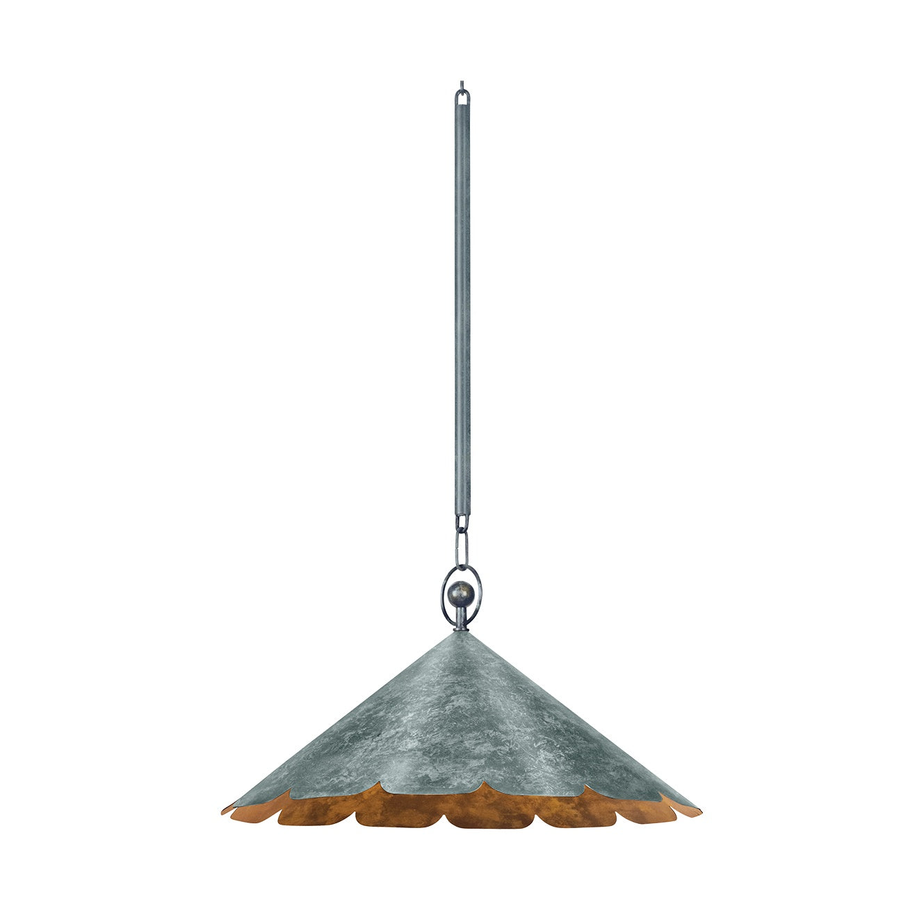 A true artisanal family, Folly Beach is lighthearted, sculptural, and a little unexpected. Inspired by the iconic shape of the Palmetto tree, the shade has a wavy, hand-sketched quality imbued with effortless charm. The rich Verdigris finish over steel brings coastal beauty into any space. Available as a lamp and a pendant in two sizes, Folly Beach adds an undeniable touch of whimsy to a bedside, kitchen, or living room.