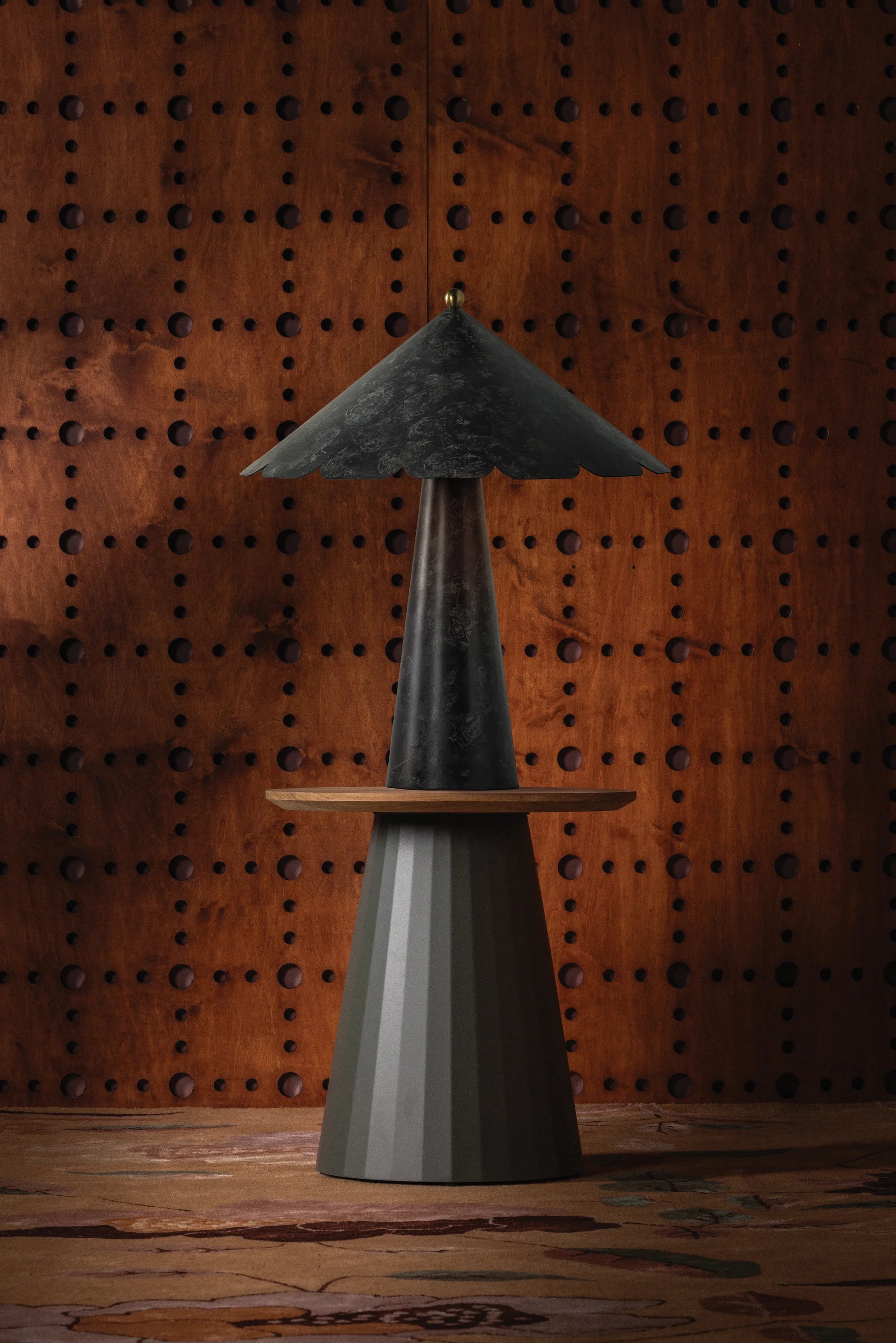 A true artisanal family, Folly Beach is lighthearted, sculptural, and a little unexpected. Inspired by the iconic shape of the Palmetto tree, the shade has a wavy, hand-sketched quality imbued with effortless charm. The rich Verdigris finish over steel brings coastal beauty into any space. Available as a lamp and a pendant in two sizes, Folly Beach adds an undeniable touch of whimsy to a bedside, kitchen, or living room.
