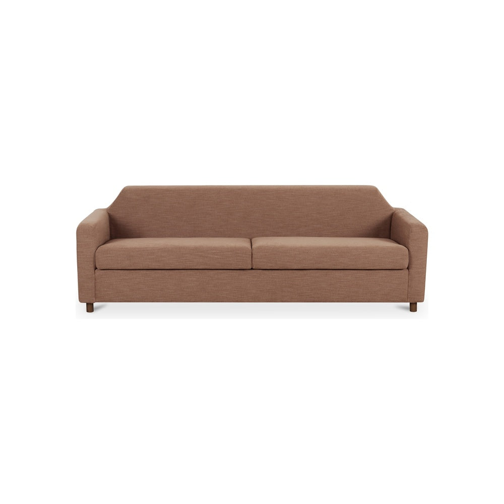Geometry meets comfort in the Fynche 92" Sofa, where precision design elevates everyday living. Drawing from Mid-Century modernism, its carefully calibrated angles—including a gently reclined backrest and expansive bench seat—create an inviting silhouette. Slim cylindrical legs provide visual lightness while the washed linen-look upholstery introduces warmth through its natural, lived-in palette. The fabric's tactile quality complements the sofa's refined proportions, striking a balance between architectural presence and approachable comfort. A statement piece that anchors interiors with understated sophistication.