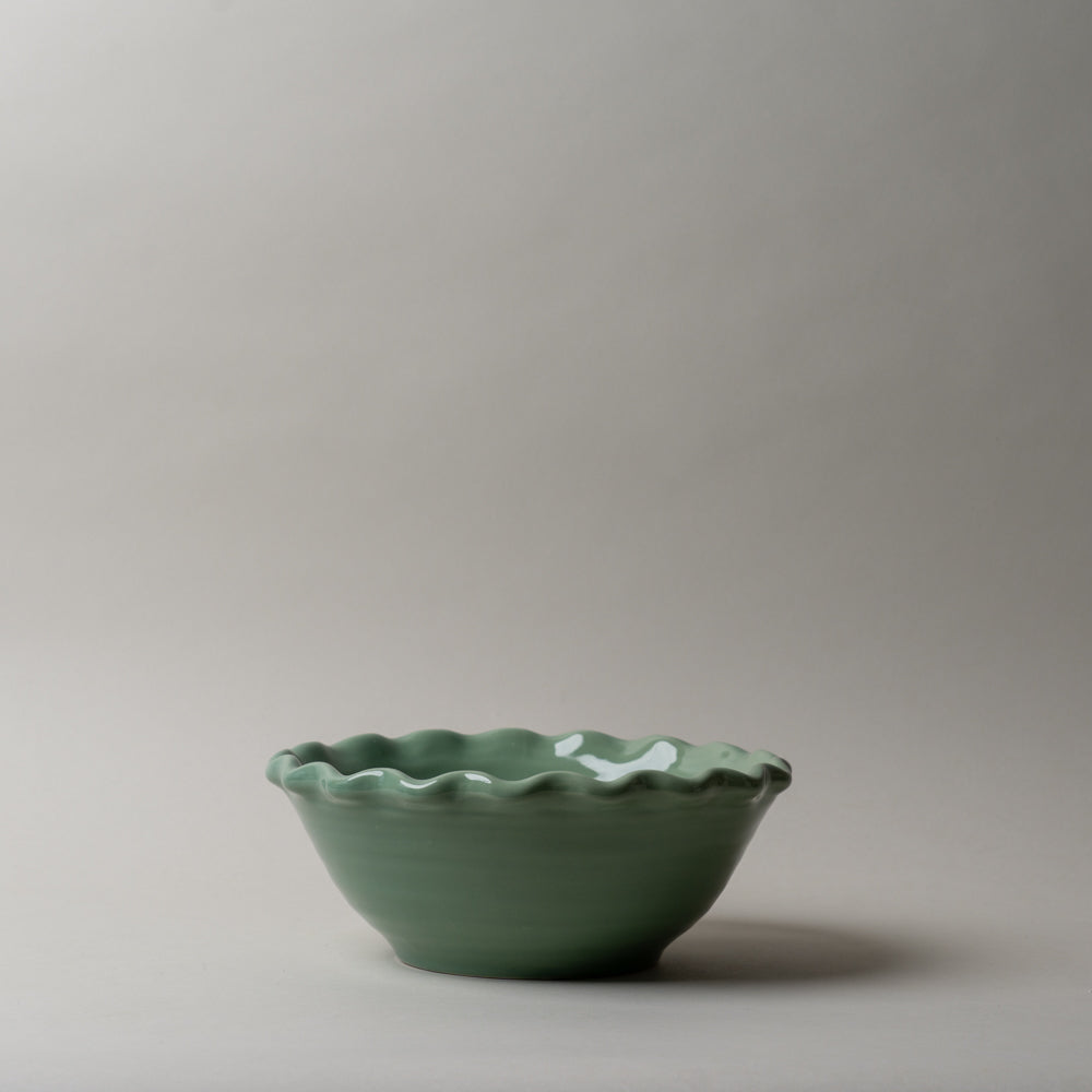 Green Stoneware Scallop Edge Bowl