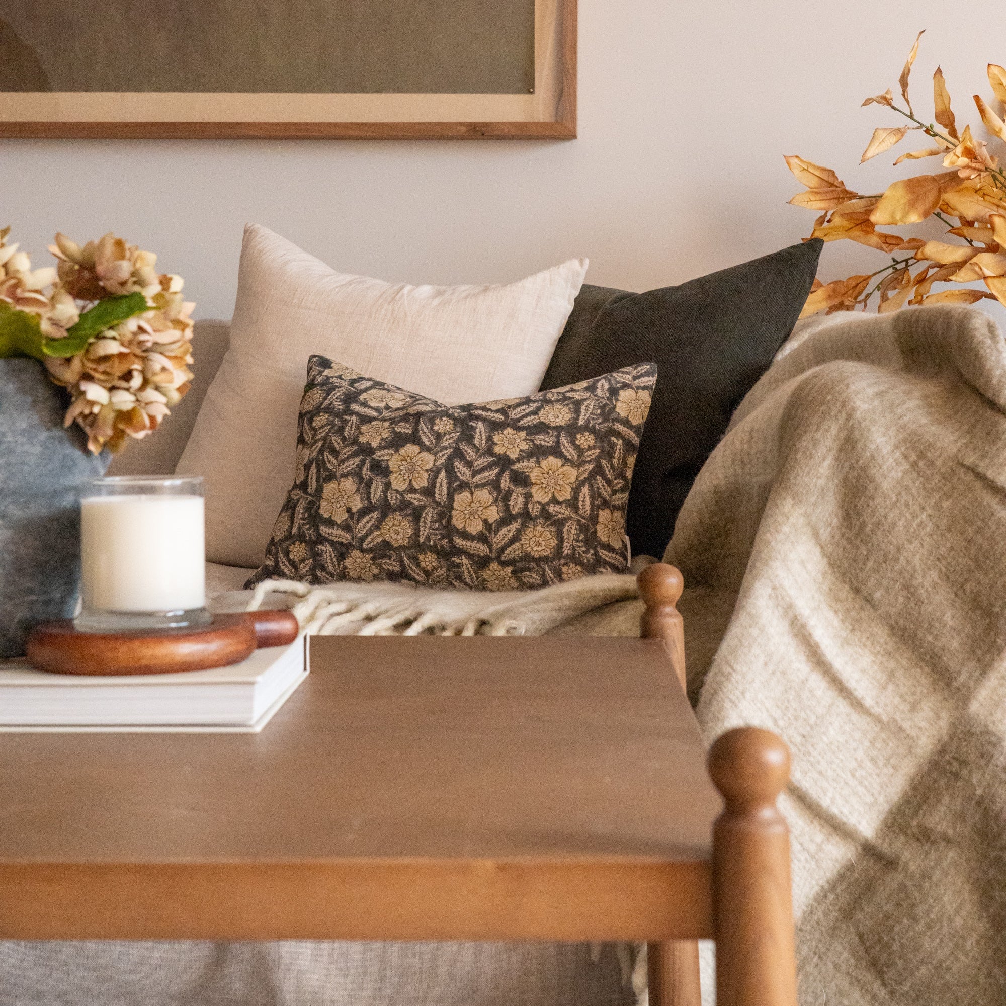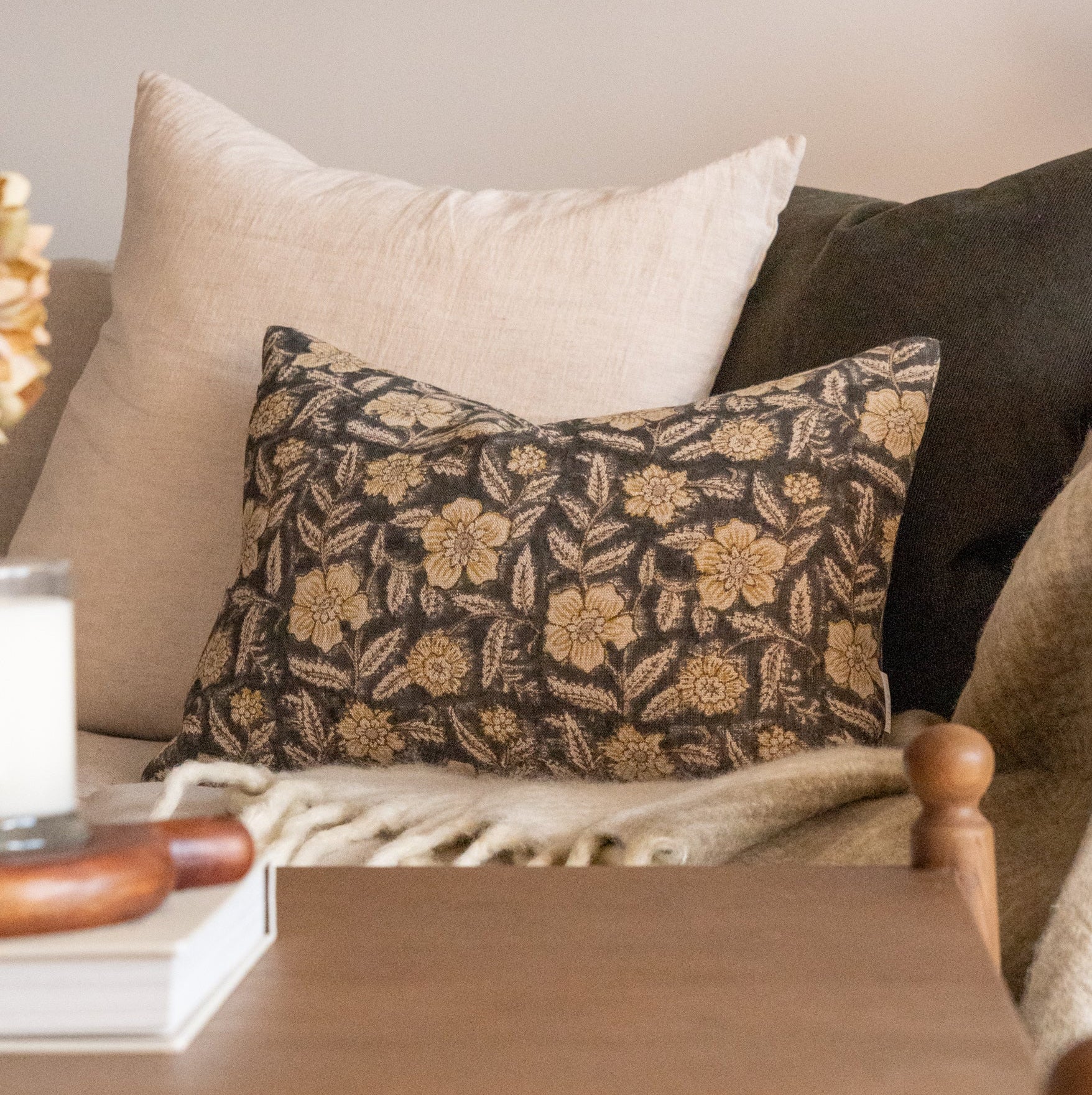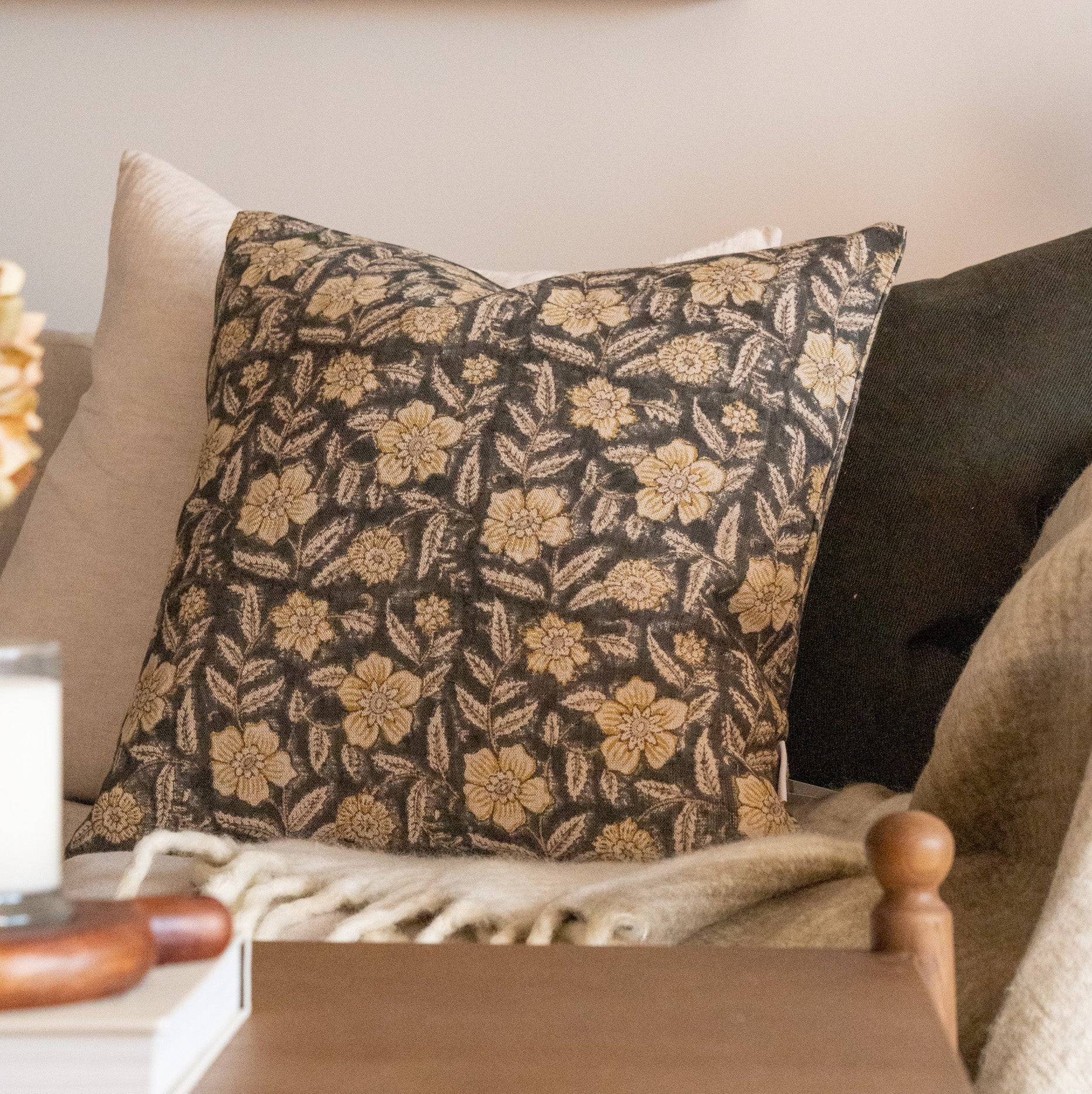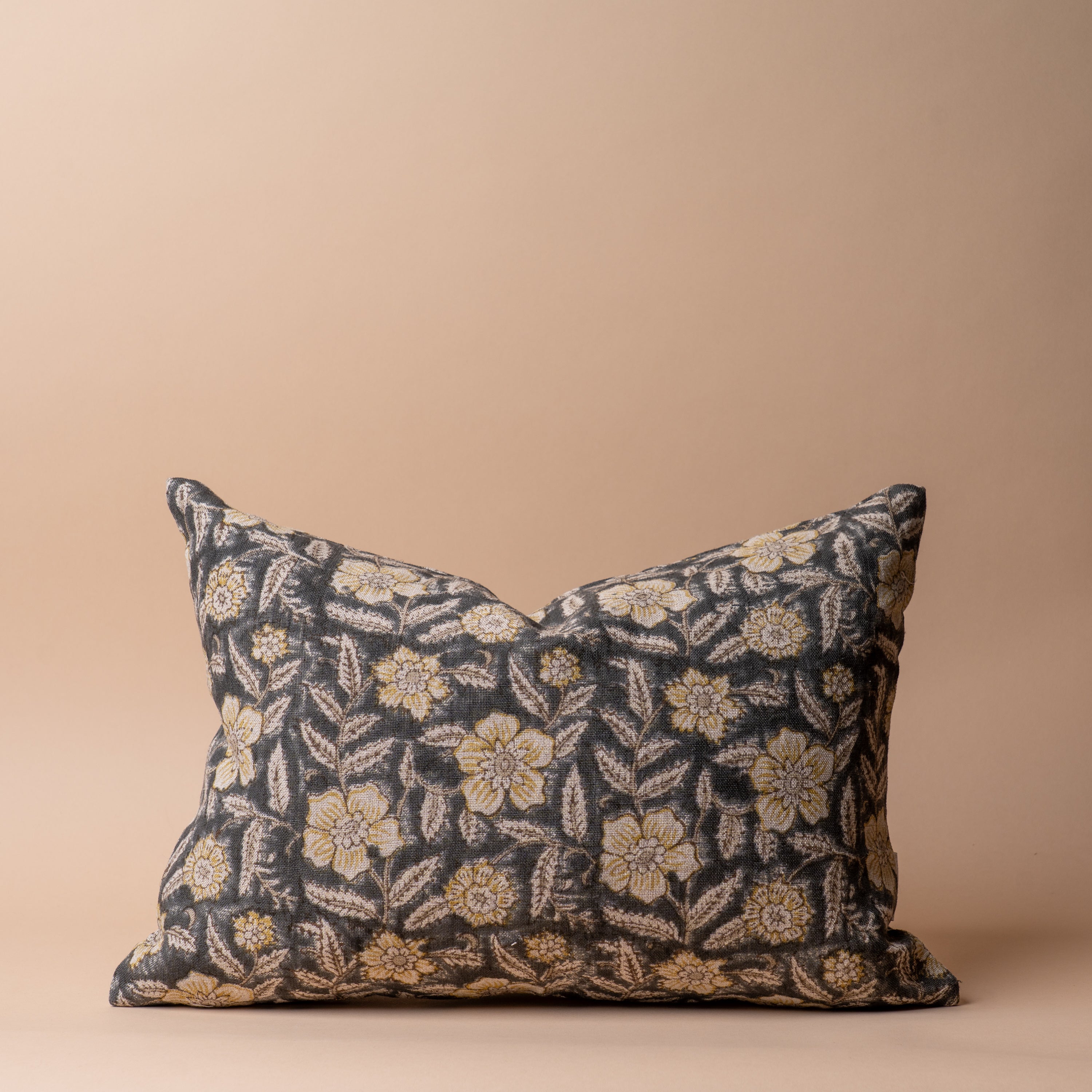 Looking to add some vintage inspired charm to your space? May we suggest our updated block print textile, hand printed in India by our artisan partners. Our Greta pillow cover features a rustic and charming floral print of greens and yellows. Now double sided, this cover offers a designer look. Style this cool toned staple in any space needing some visual interest and a hint of colour.