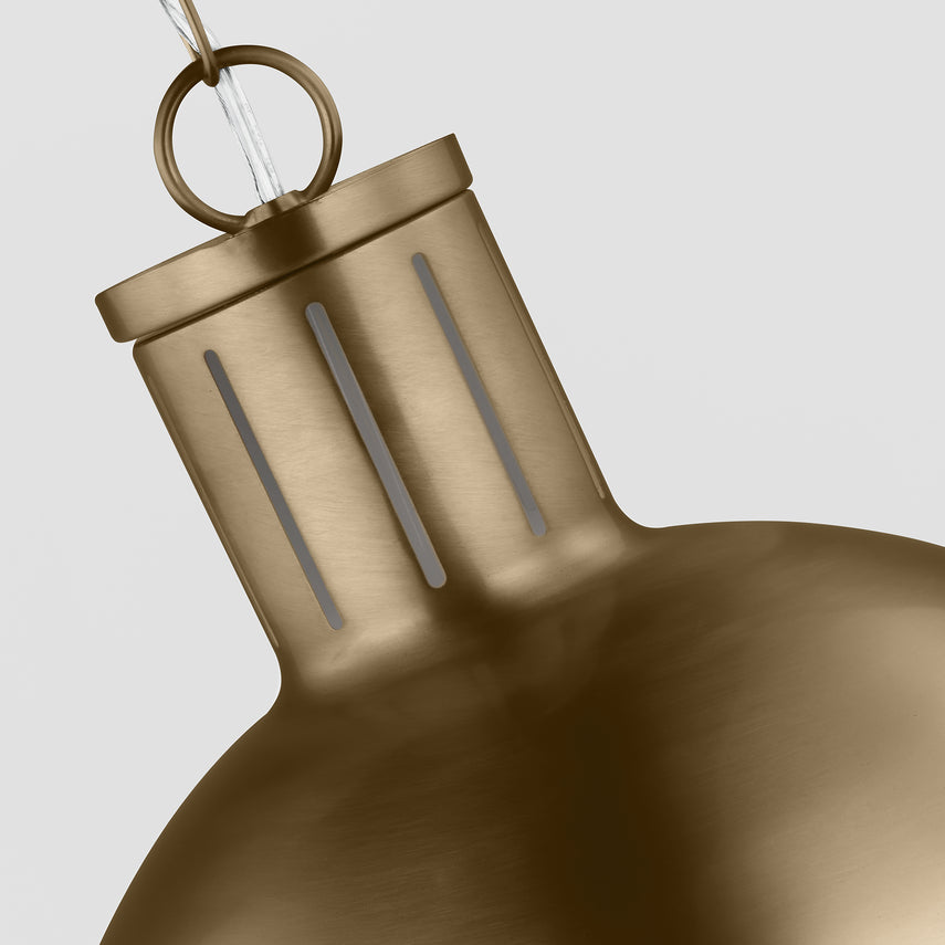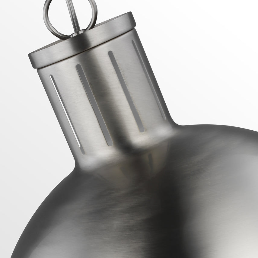 The Hanks One Light Mini Pendant combines a modern spherical design with a riveted bronze finish for an industrial look. Perfect for focused lighting in kitchens, bars, or workspaces, it offers both style and function in a compact, durable form.