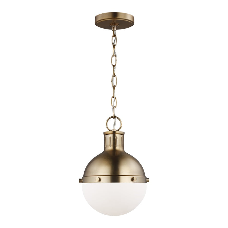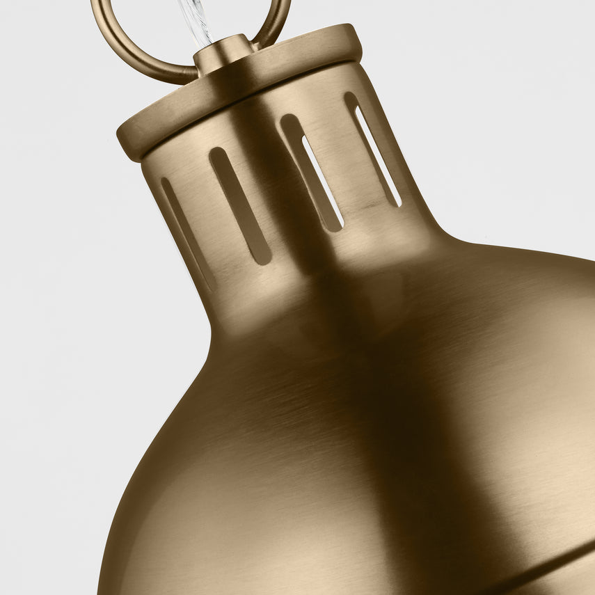 The Hanks One Light Mini Pendant combines a modern spherical design with a riveted bronze finish for an industrial look. Perfect for focused lighting in kitchens, bars, or workspaces, it offers both style and function in a compact, durable form.