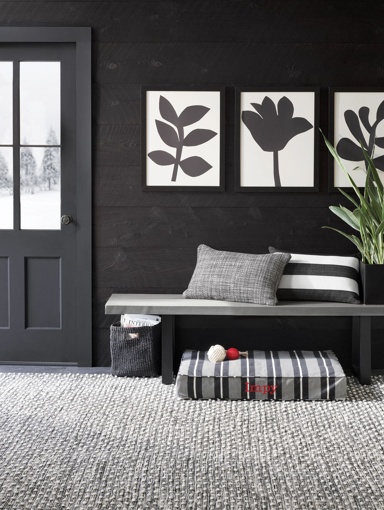 Multi marled ground of indigo, blue, ivory, and black resembles acid washed denim with raised hobnail neps for a pleasing underfoot texture and performance (or is it PAWformance?) par excellence. For versatility and comfort, you can't beat our innovative new designs in wonderful washable wool-like fibers.