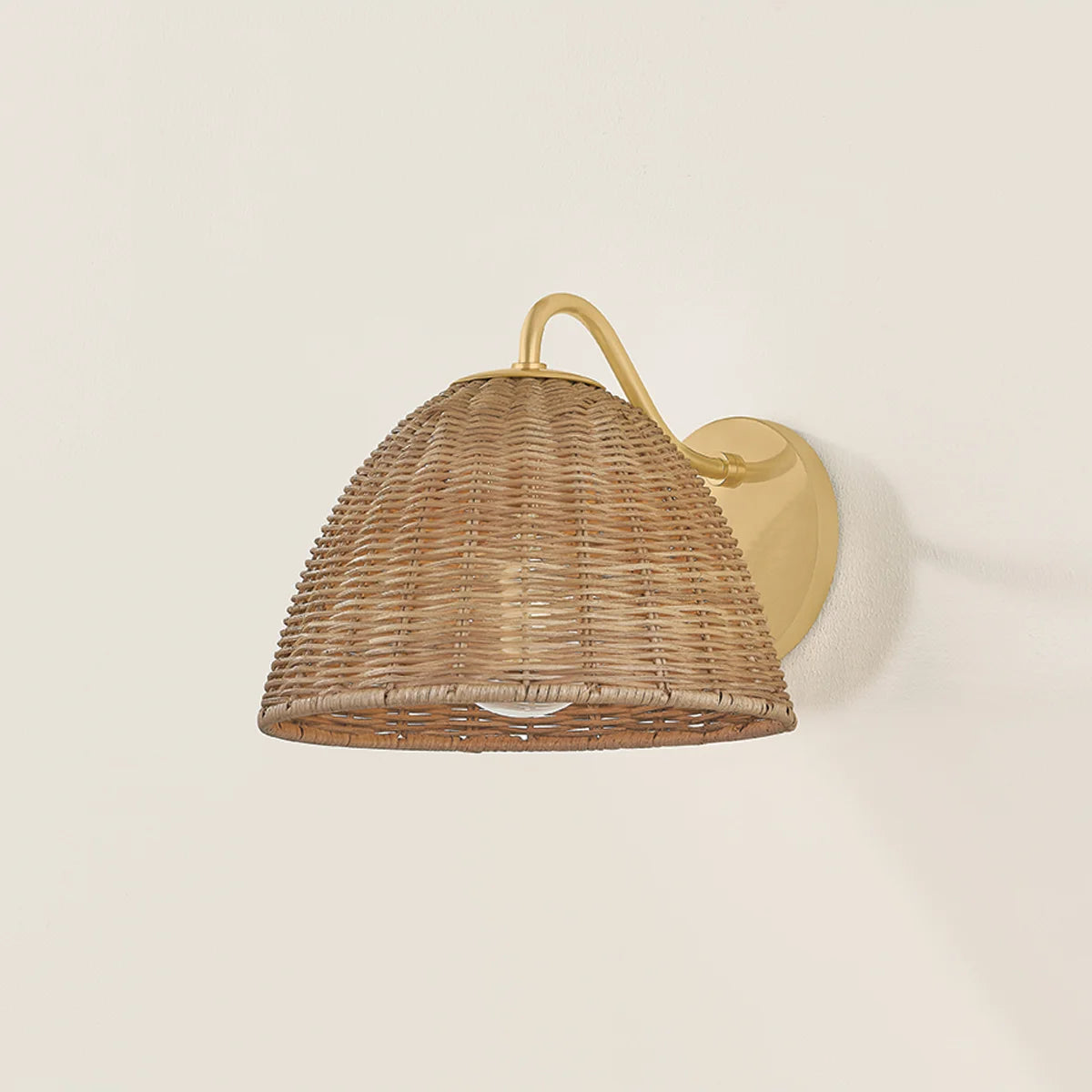 A timeless silhouette gets a fresh update with the Katniss family. Handwoven from vintage natural wicker, the mushroom-shaped shades nod to an organic, loosely botanical motif. The arms of the Aged Brass-finished frame follow the curves of the shades for a decorative flourish. Available as a sconce or a 3 or 5-light chandelier, Katniss is the perfect way to add texture and whimsy to a space.