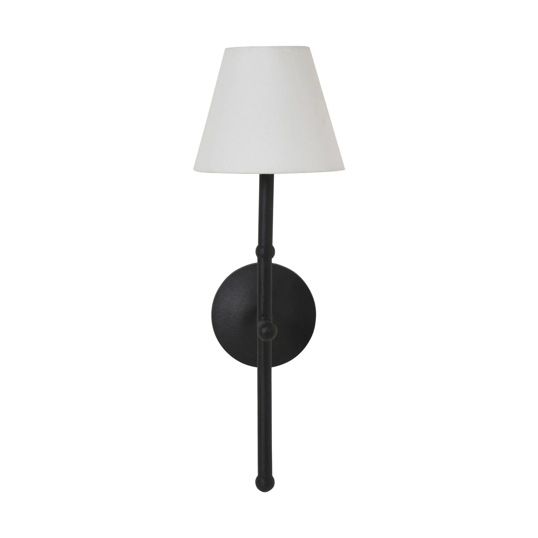 The Kimmy Wall Sconce offers a sleek matte black finish that complements a variety of interiors. Ideal for highlighting artwork, brightening reading nooks, or enhancing hallways, this fixture delivers soft, evenly diffused ambient light. Its versatile design ensures both functional illumination and a refined aesthetic, making it a sophisticated addition to any space.
