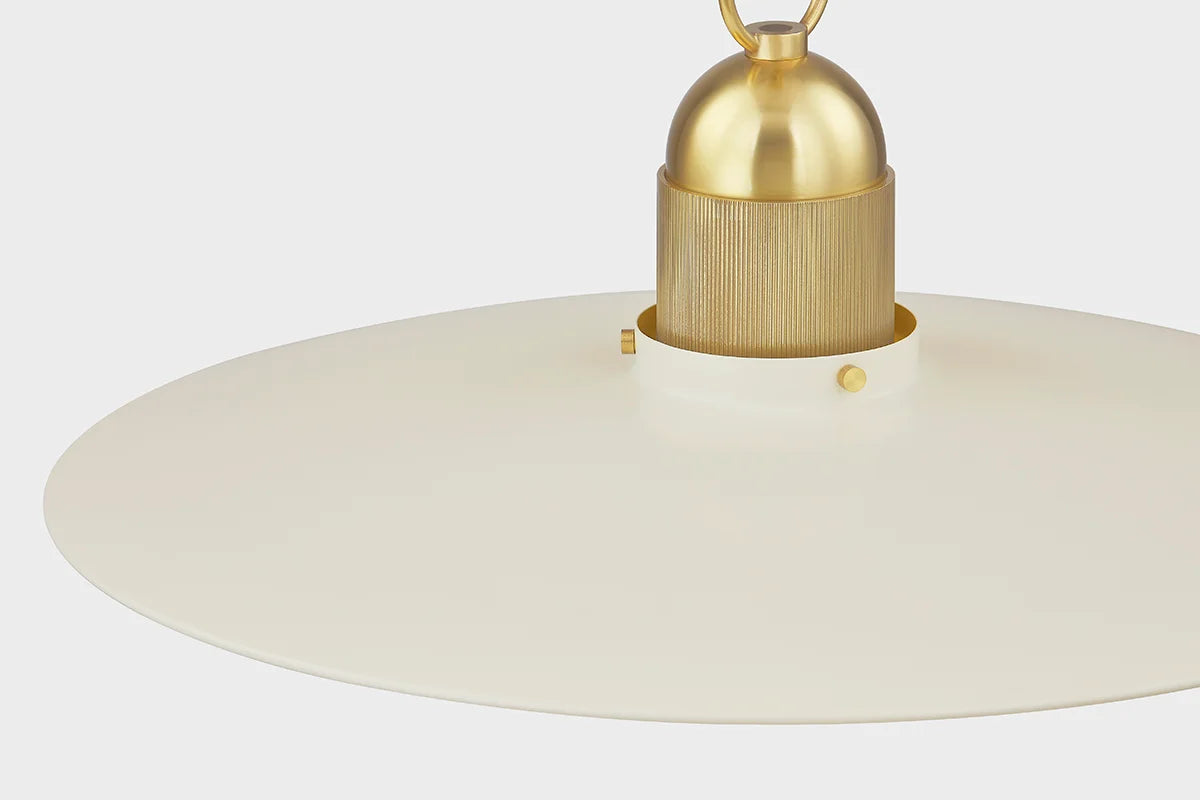 A beautifully modern take on the farmhouse pendant. With its delicate brass details and light reflecting off its shade, it will be stunning no matter how its styled.