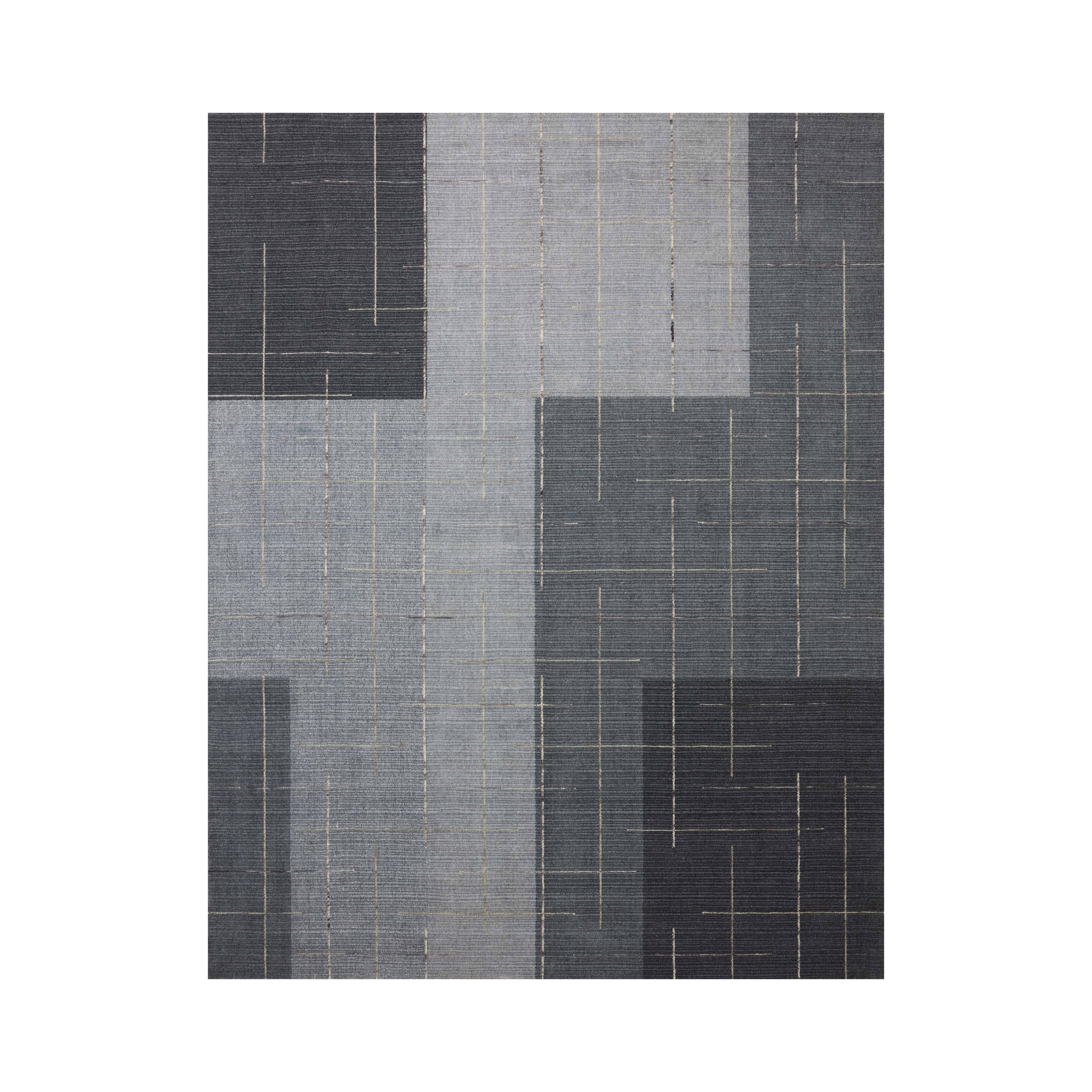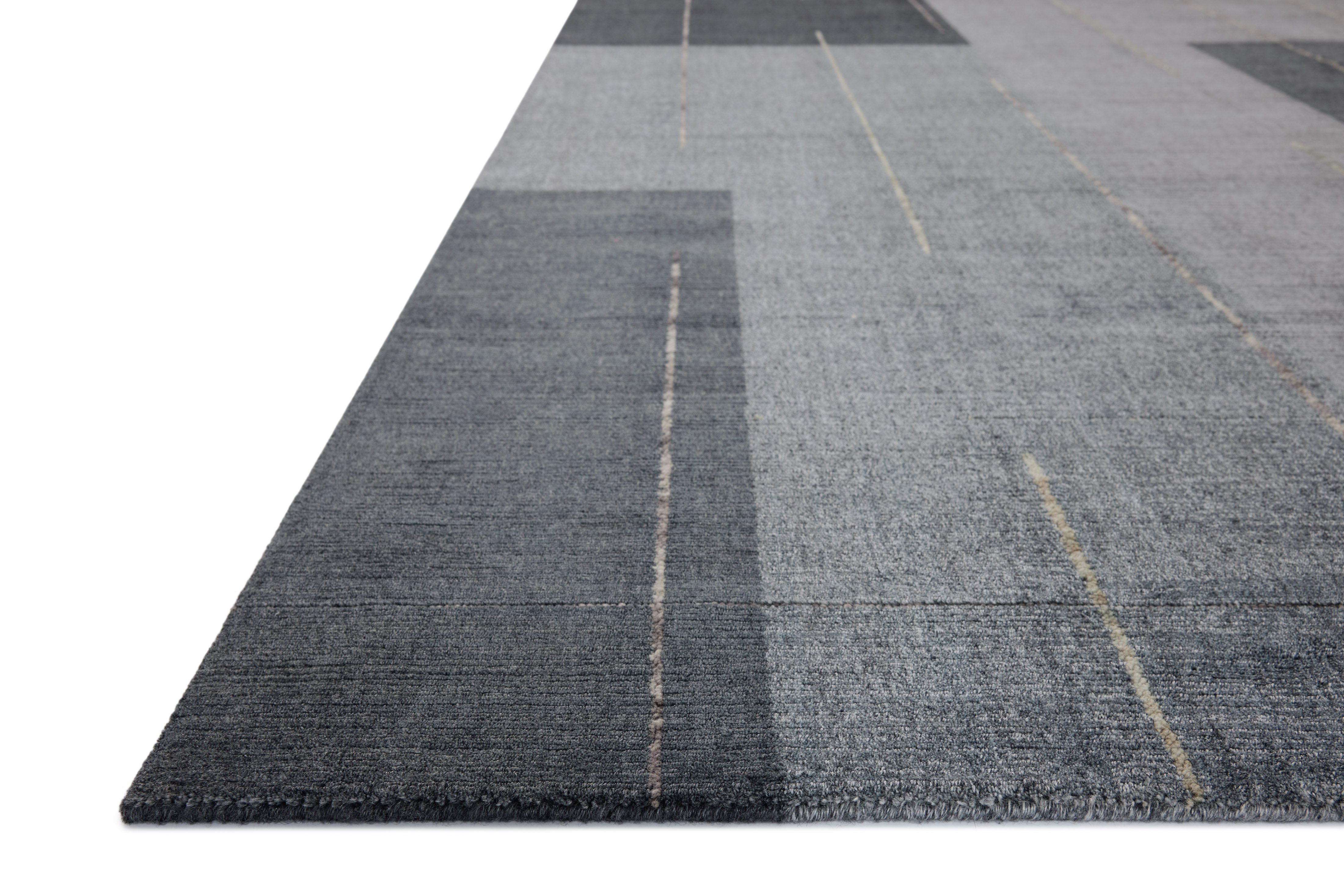 The Alistair Collection features a geometric area rug distinguished by its bold architectural pattern, enhancing sophisticated interiors. Its solid color blocks are accented with thin, space-dyed looped yarn lines, adding depth to spaces like living rooms and bedrooms. Hand-loomed in India from a blend of wool, viscose, and cotton, the rug carries GoodWeave certification, reflecting a dedication to ethical craftsmanship and supporting artisan communities.