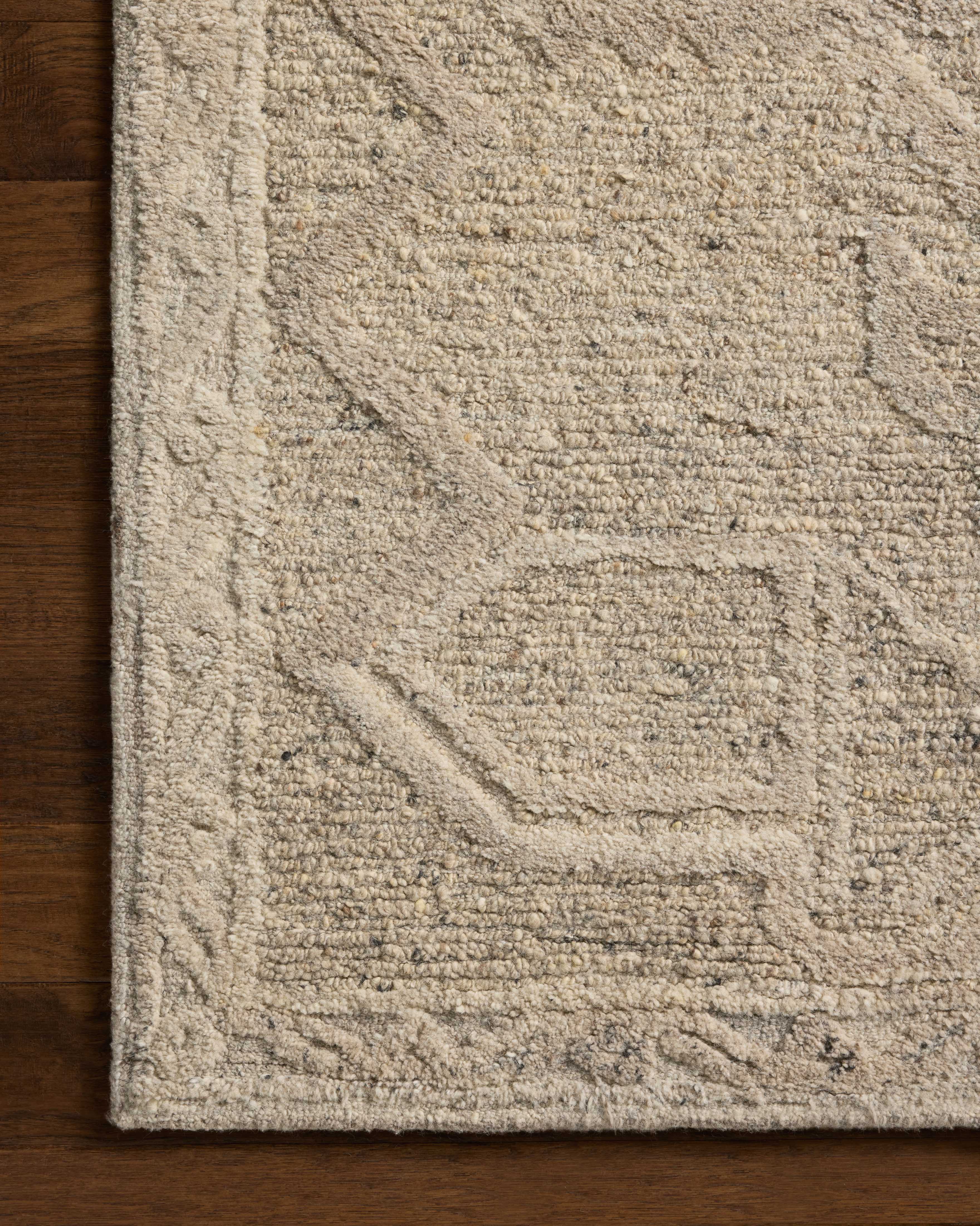 The Mabel Collection presents a chunky wool area rug that offers a contemporary interpretation of traditional Turkish motifs. Its design features a raised pile that adds depth and texture, complemented by a neutral stone color scheme suited for various spaces such as living rooms and bedrooms. Hand-tufted in India from wool and certified by GoodWeave, this rug reflects a commitment to ethical manufacturing and support for artisan communities. Wool rugs naturally shed, so regular vacuuming without a beater bar is advised to maintain its appearance.