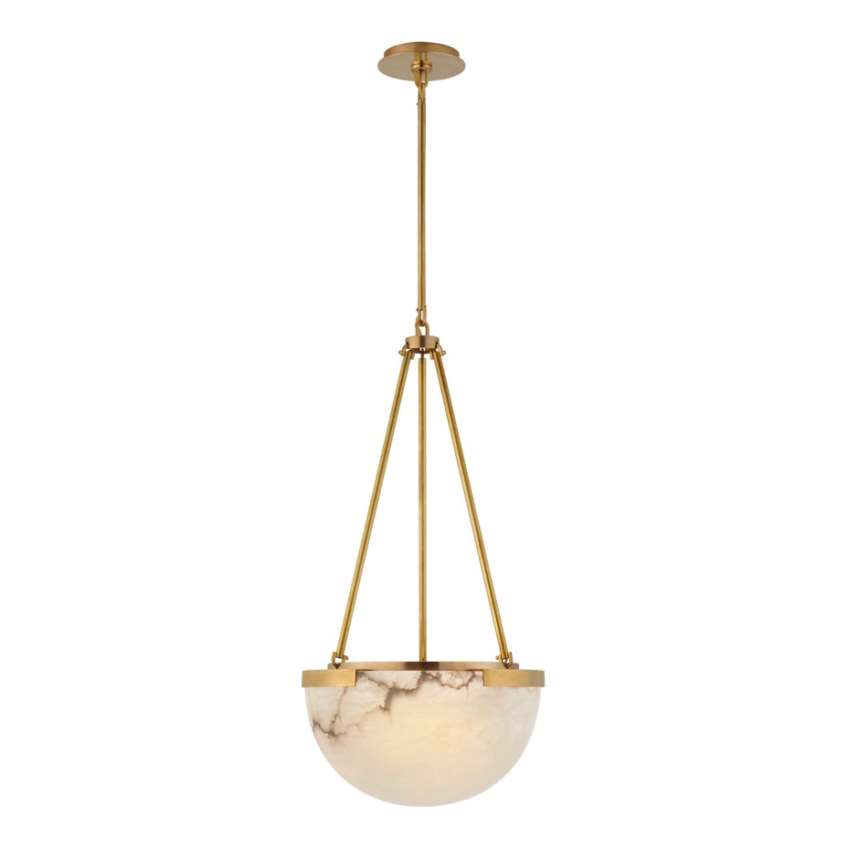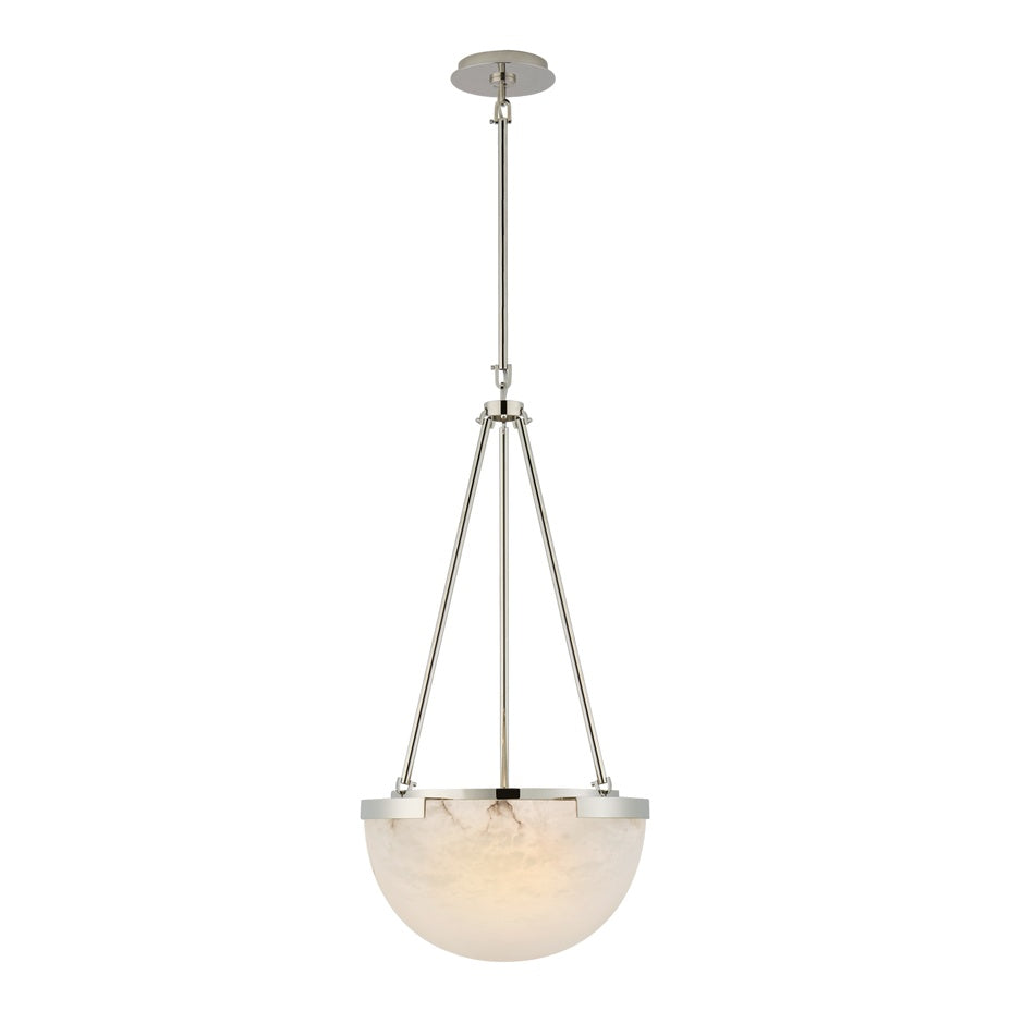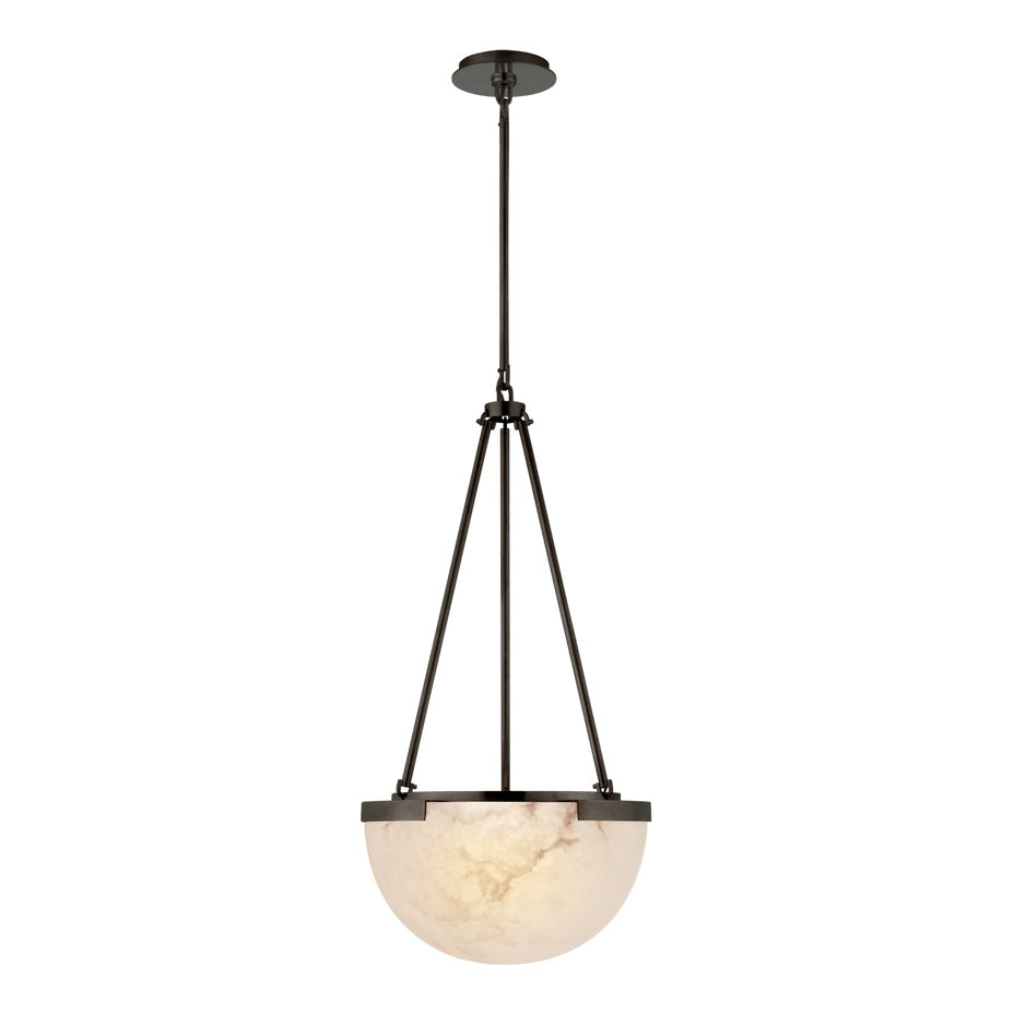 The Melange series by Kelly Wearstler contrasts natural alabaster with metal in rounded forms, blending organic and luxurious elements for a chic modern look. Carved alabaster shades emit a soft glow, while streamlined shapes complement angular or minimalist interiors. Available in bronze, burnished antique brass, or polished nickel, these fixtures include flush mounts, pendants, sconces, and table lamps, each offering unique variations in veining and tone for a collectible appeal.