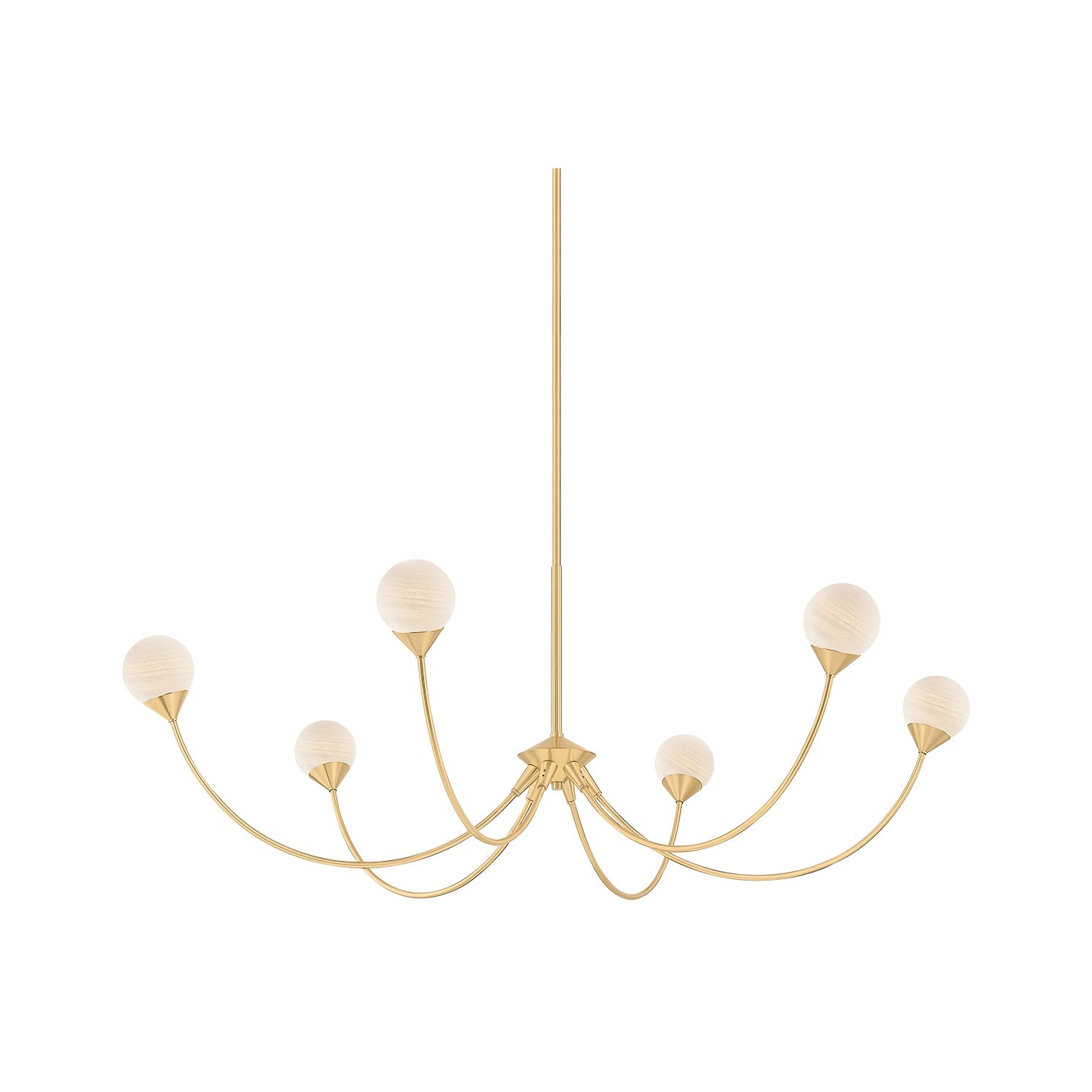 The silhouettes of the Natasha family are classically decadent, yet light and sparse. Swooping arches and balanced cloud glass orbs make the chandeliers feel daring, while the sconce is soft and simplified. Finished in Aged Brass, Natasha hits the right notes between new and nostalgic for a fresh form language that will invigorate any space.