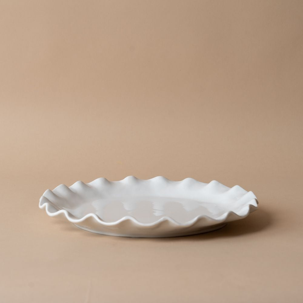 Indulge in this stunning dining collection, featuring delicately crafted white-washed stoneware inspired by the natural beauty of seashells and ocean waves. With its organic design, it is perfect for mixing and matching with any of your other collected dining pieces, creating a truly captivating gathering experience.
