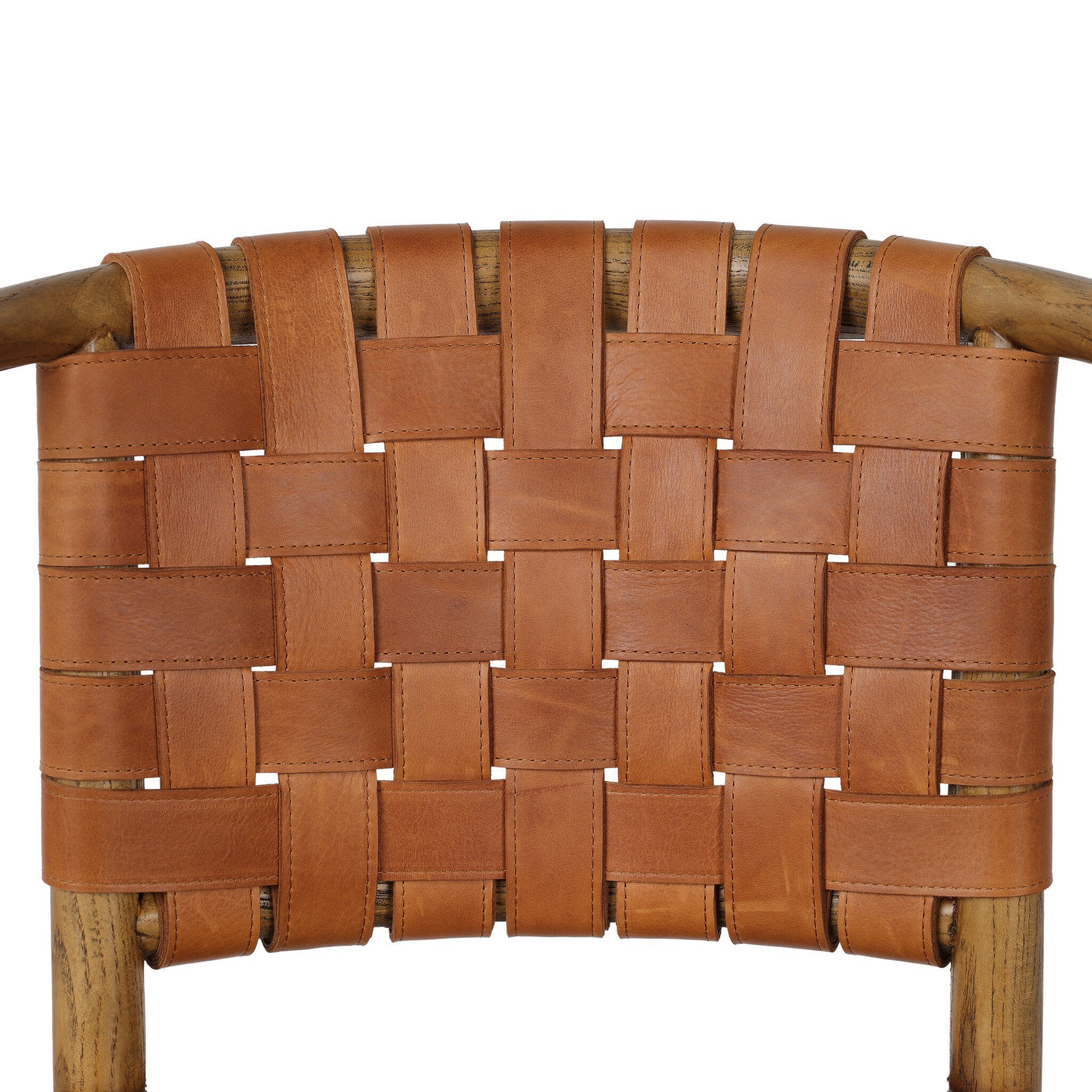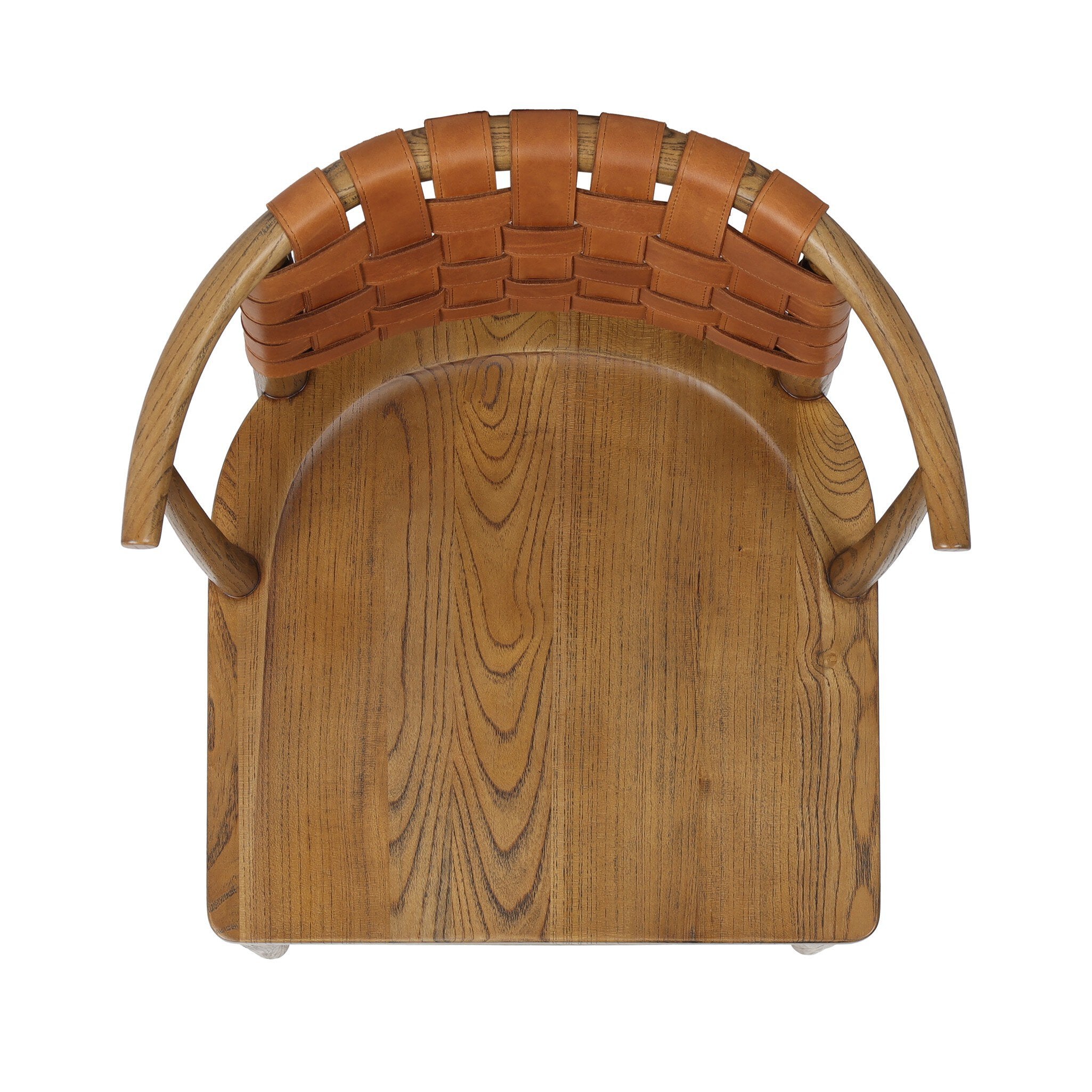Drawing from classic bistro aesthetics, this counter stool showcases a distinctive barrel-shaped backrest woven in supple leather, elegantly framed by warm toasted nettlewood. The refined silhouette combines timeless design principles with contemporary craftsmanship, making it an ideal accent piece for kitchen islands or bar areas.