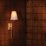 Tailored, yet relaxed, the Sullivan sconce blends texture-rich natural linen and rattan. The unique curvature of the stem provides a graphic detail, elevating the simple design with graceful lines. An Aged Brass finish on the metalwork balances the tactile materials. Alone or in multiples, Sullivan is a pleasing addition to hallways, bedrooms, bookcases, and powder rooms.