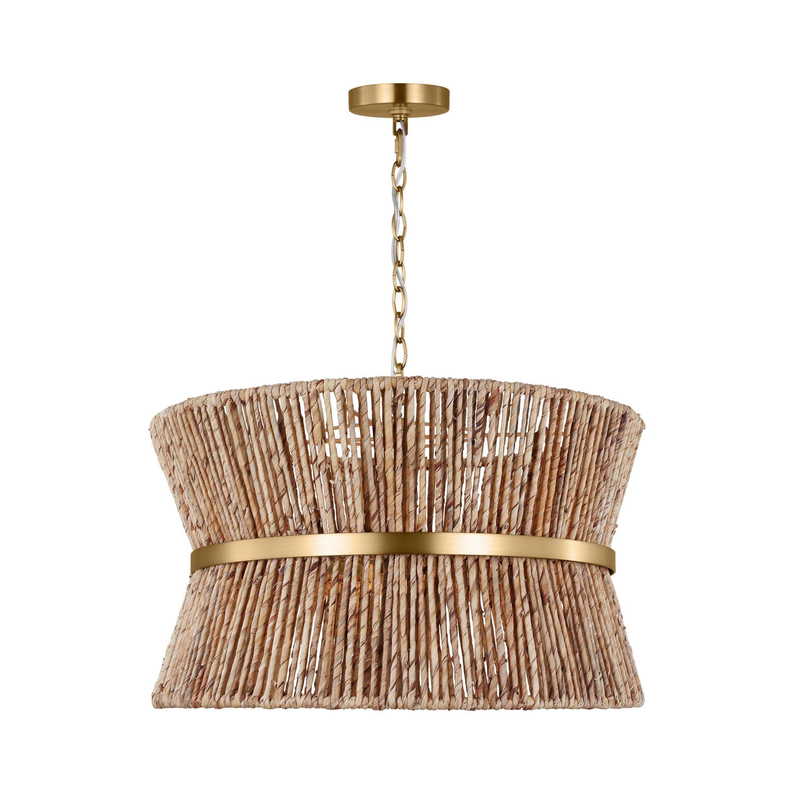 Thurlo is constructed from metal and showcases a geometric shade design with a woven texture, evoking a coastal-inspired aesthetic.